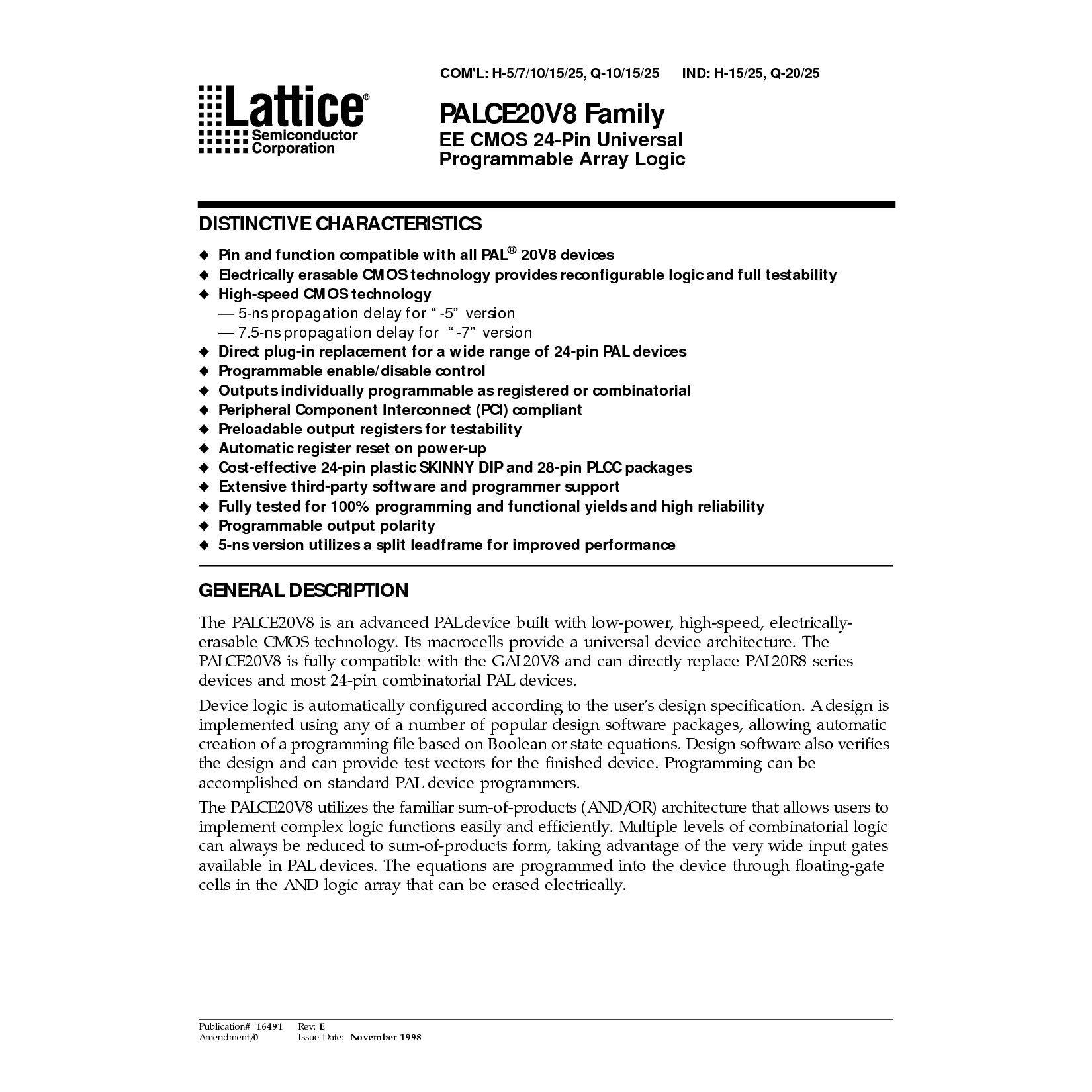 浏览型号PALCE20V8H-7JC/5的Datasheet PDF文件第2页