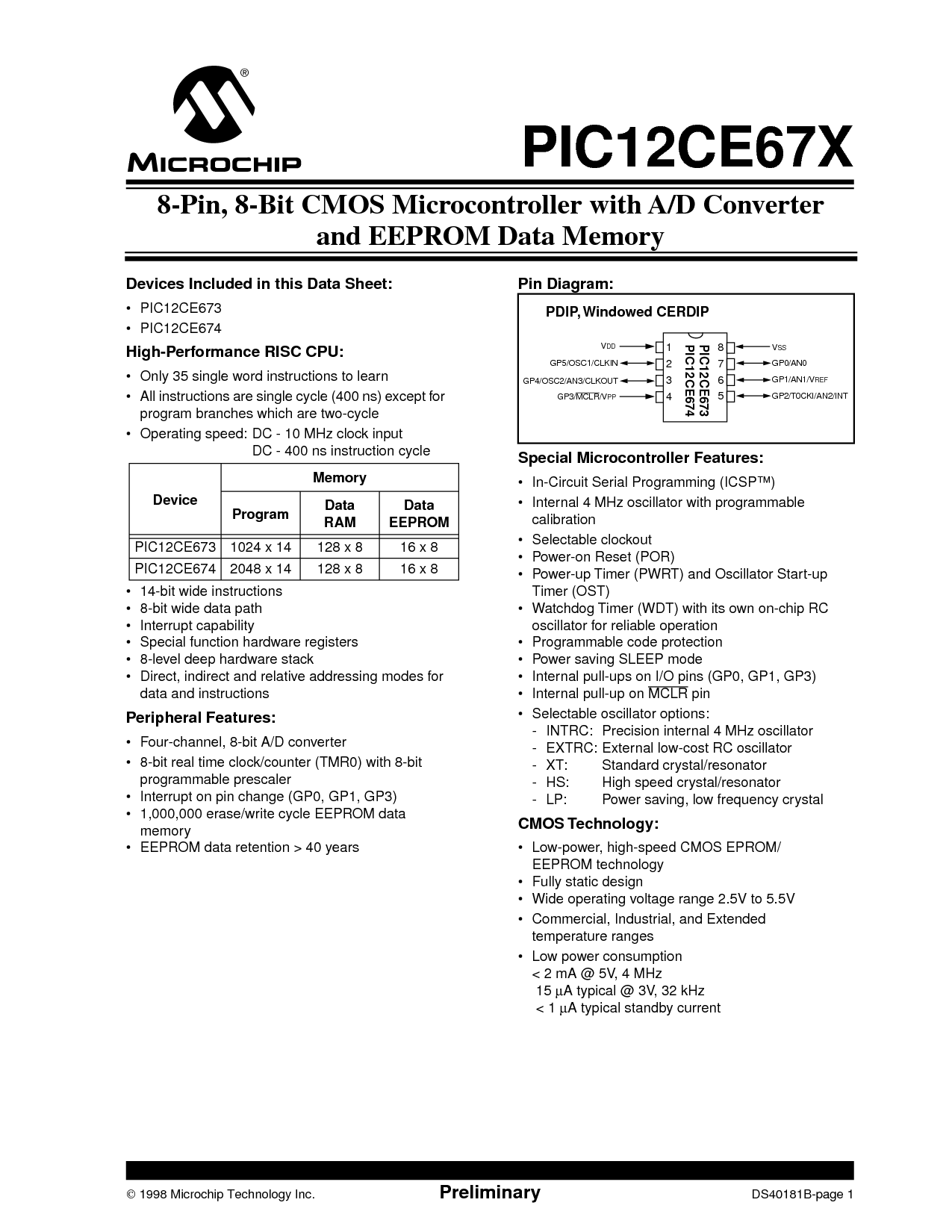 浏览型号PIC12CE673-04E/JW的Datasheet PDF文件第2页