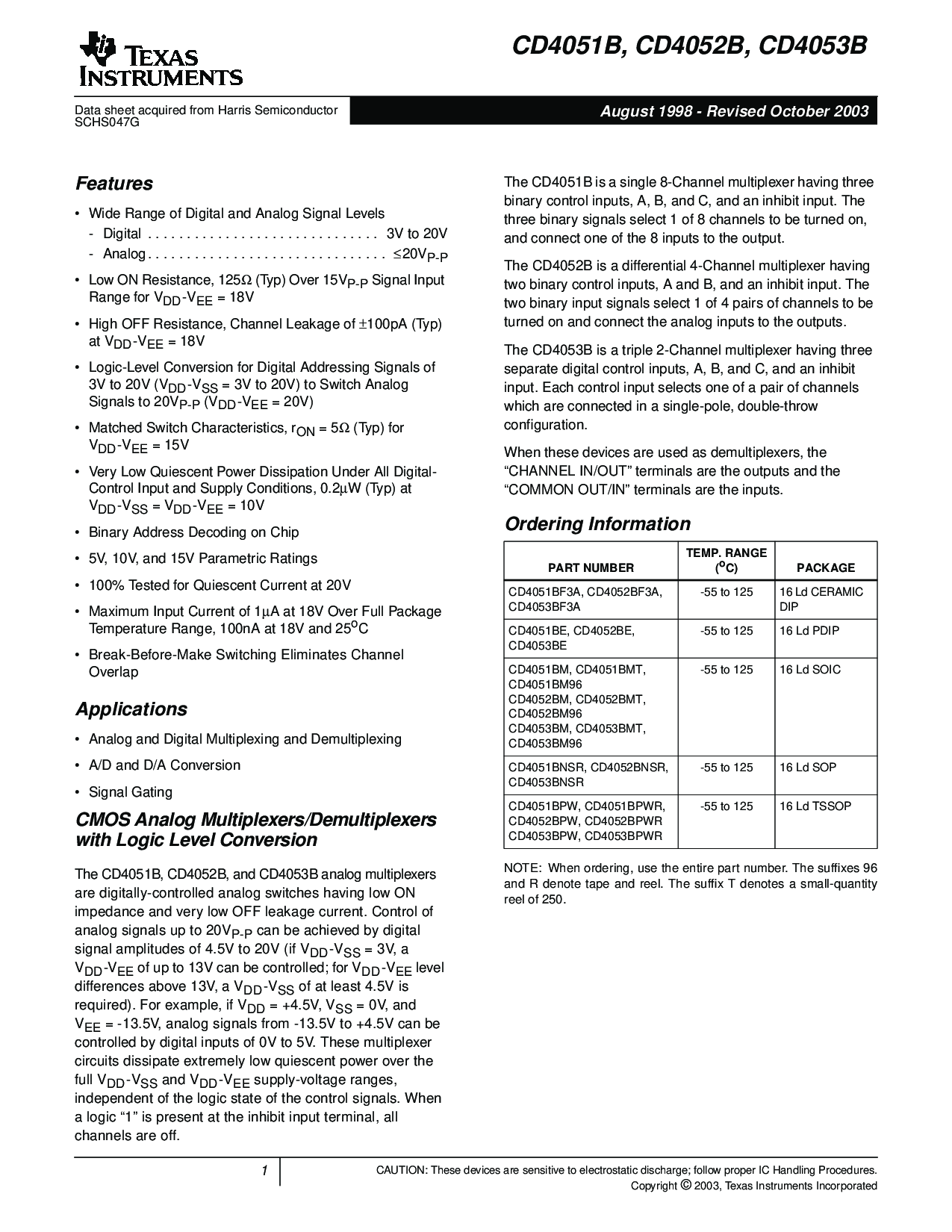 这 cd4051b, cd4052b, 和 cd4053b 模拟 多路复用器