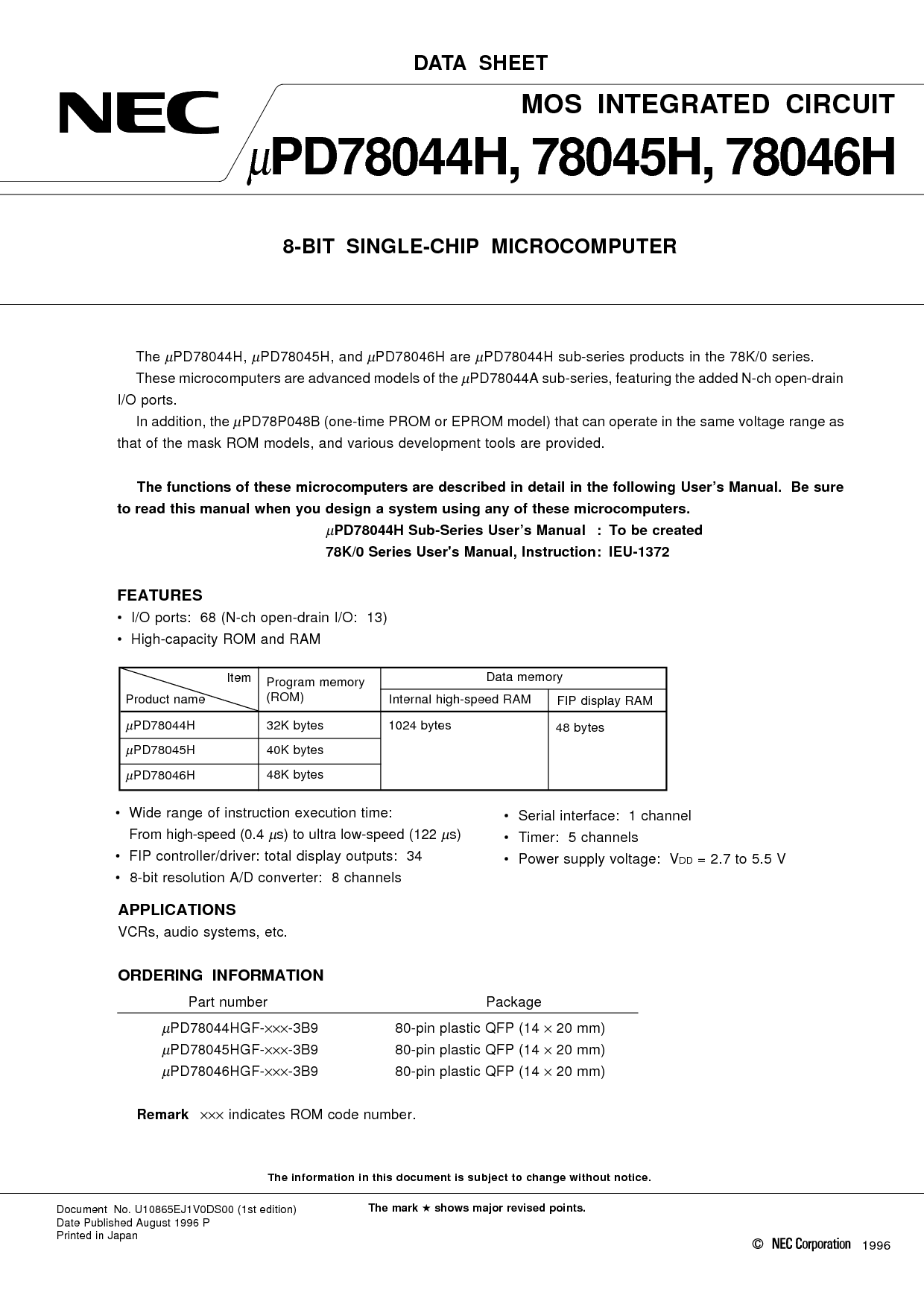 pd78044h sub-系列 产品 入点 这 78k/0 系列.