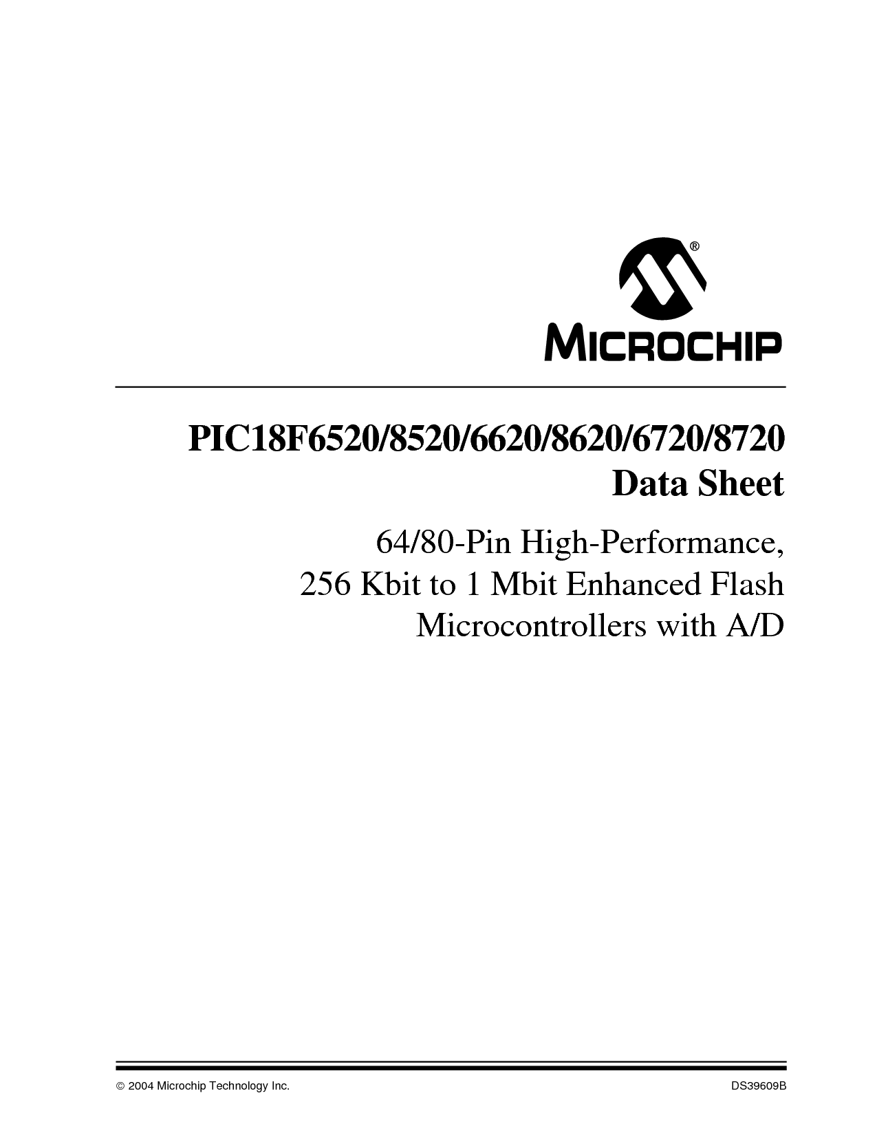 2004 微芯片 技术 公司 DS39609B pic18f6520/8520/6620/8620/6720/8720 数据 工作表 64/80-管脚 高-业绩, 256 kbit 至 1 mbit 增强型 闪光灯 微控制器 与 一个/d | |