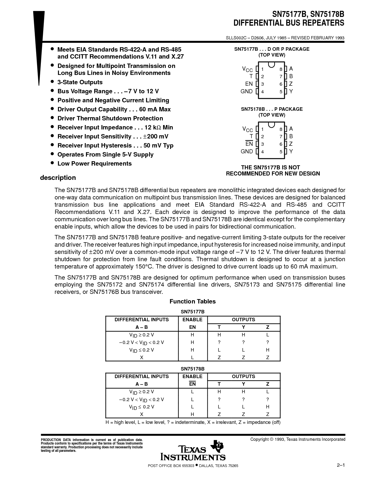 浏览型号SN75177BP的Datasheet PDF文件第2页