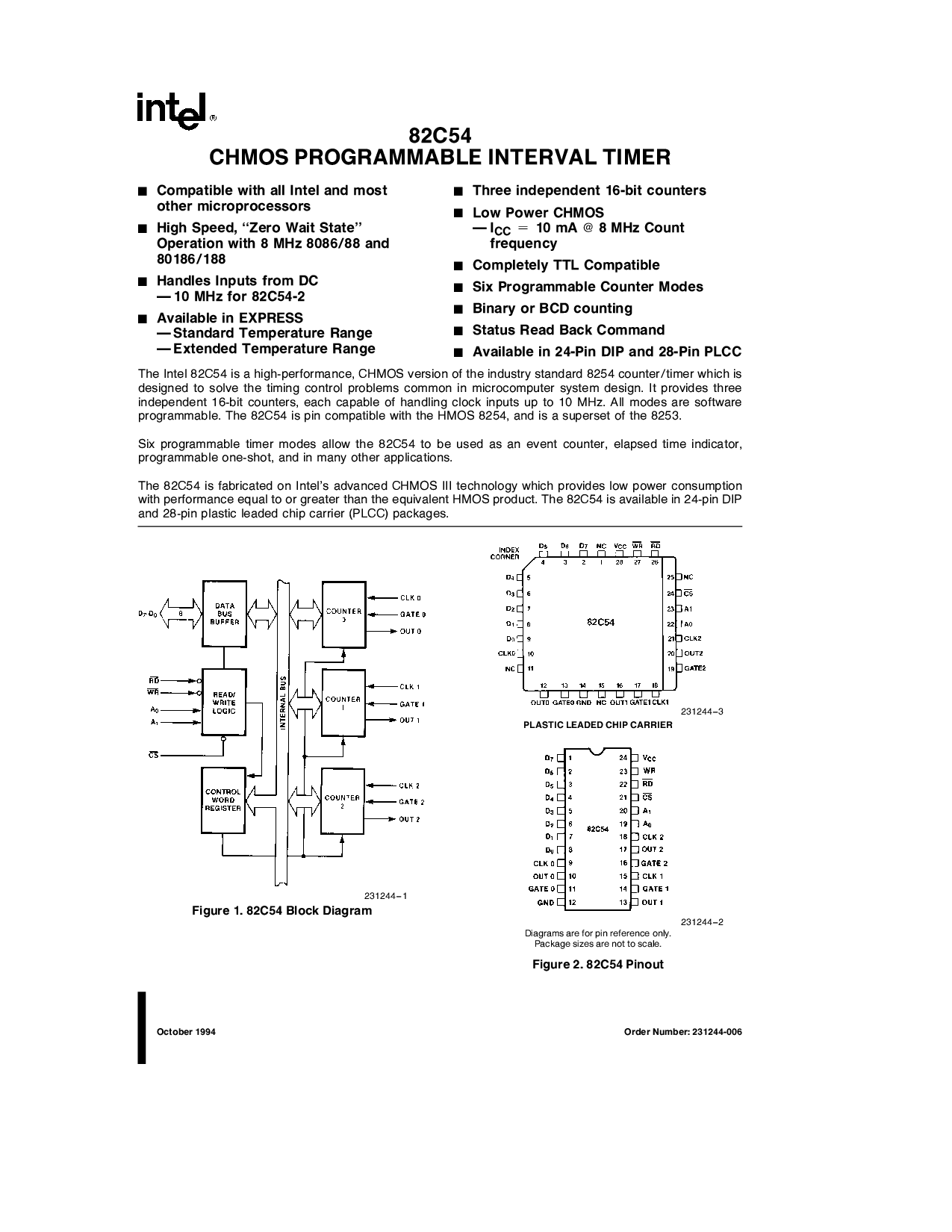 英特尔 82C54 一个 高-performance CHMOS 版本 行业 标准 8254 countertimer 哪个