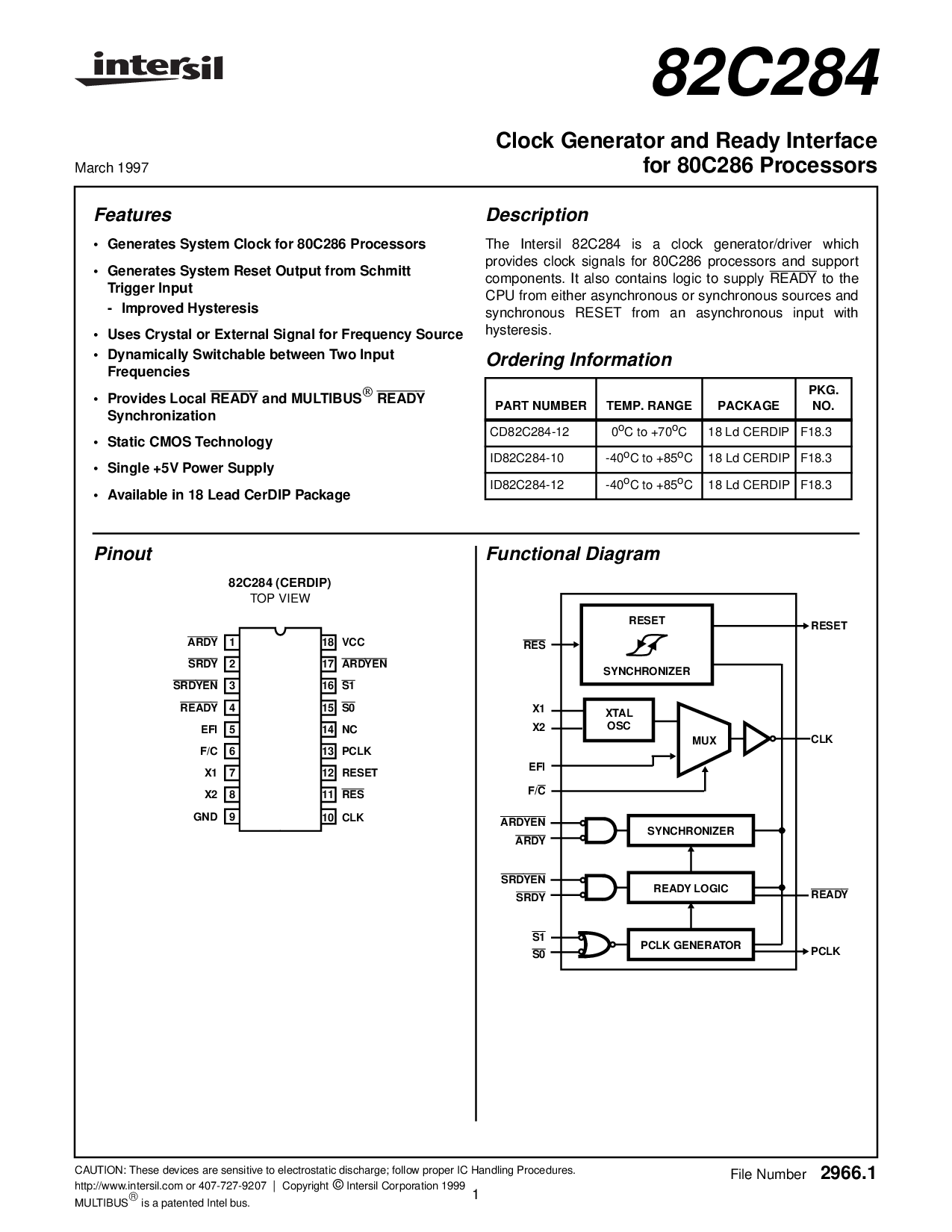 这 intersil 82c284 是 一个 时钟 发电机/驾驶员 哪个