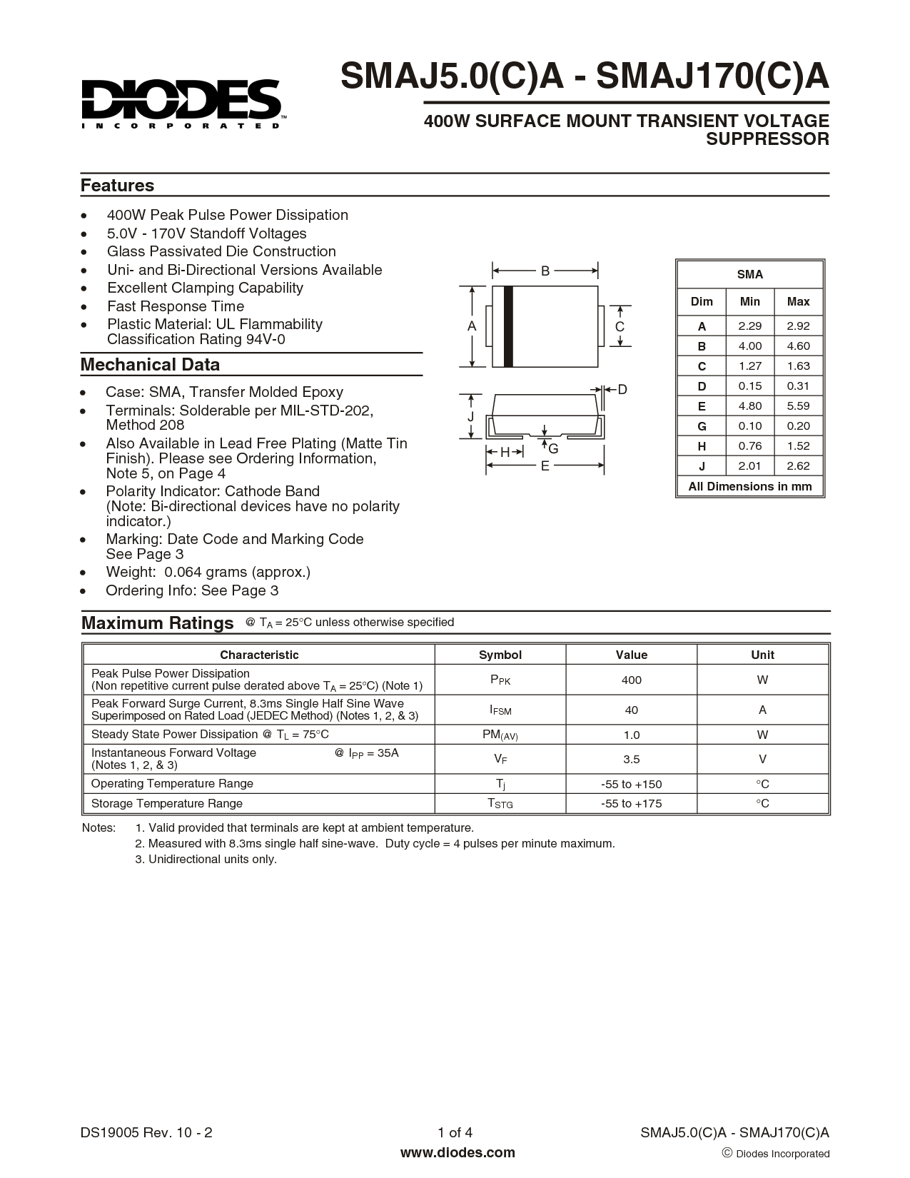 ds19005 rev. 10 - 2 1 的 4 smaj5.0(c)一个 - smaj170(c)一个