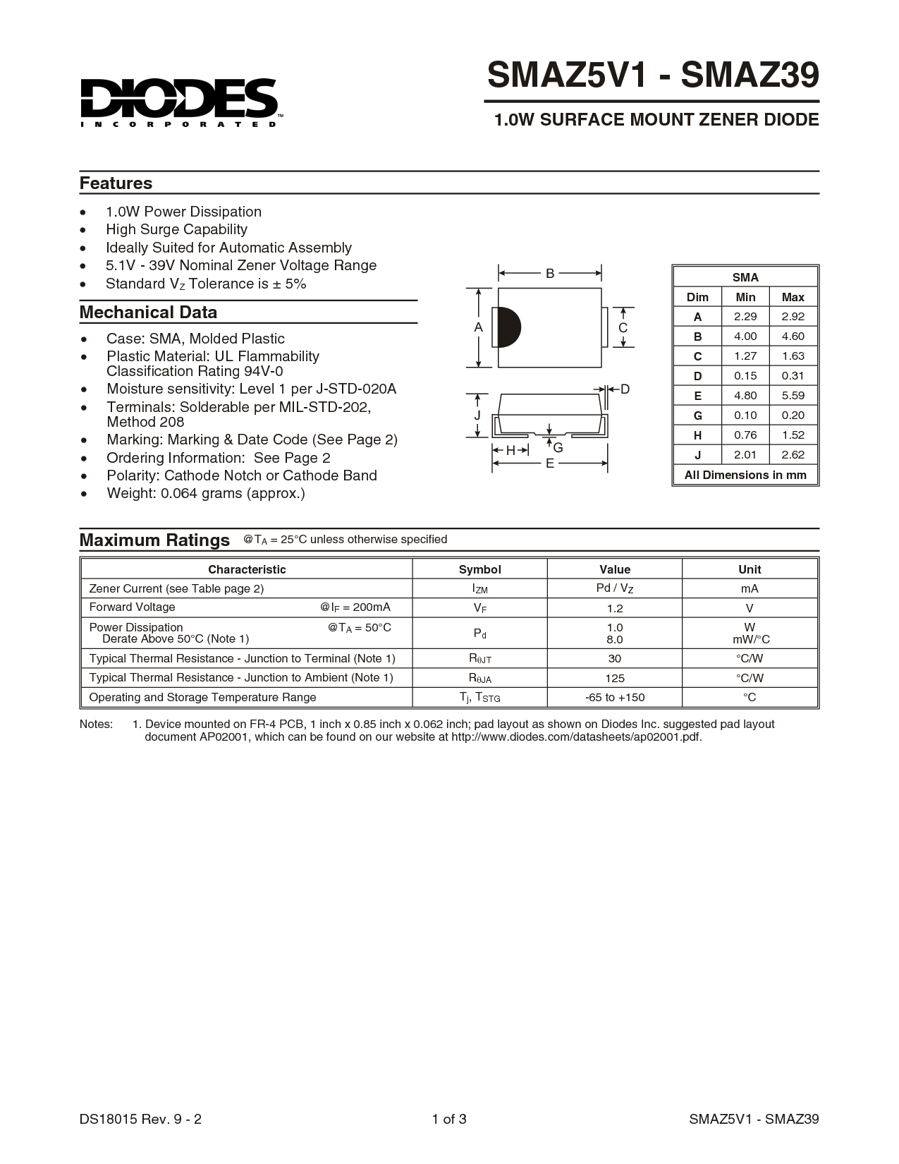 浏览型号SMAZ5V6的Datasheet PDF文件第2页