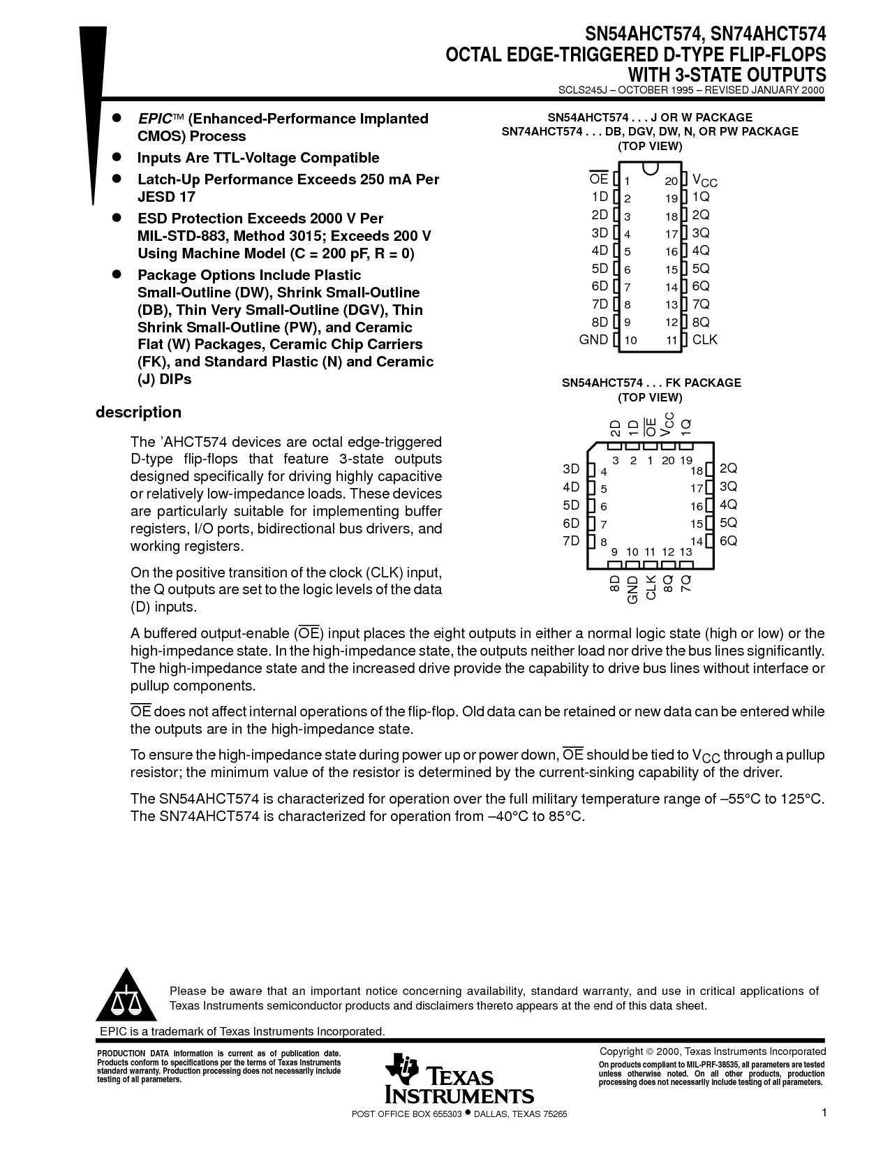 浏览型号SN74AHCT574PW的Datasheet PDF文件第2页