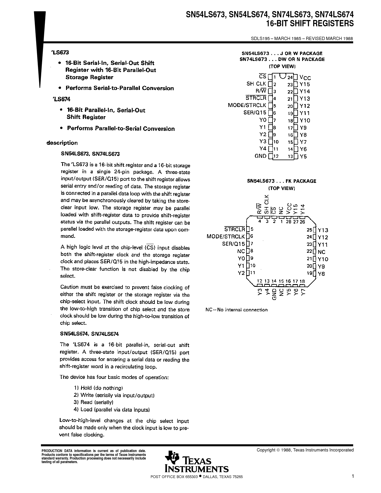 sn54ls673, sn54ls674, sn74ls673, sn74ls674