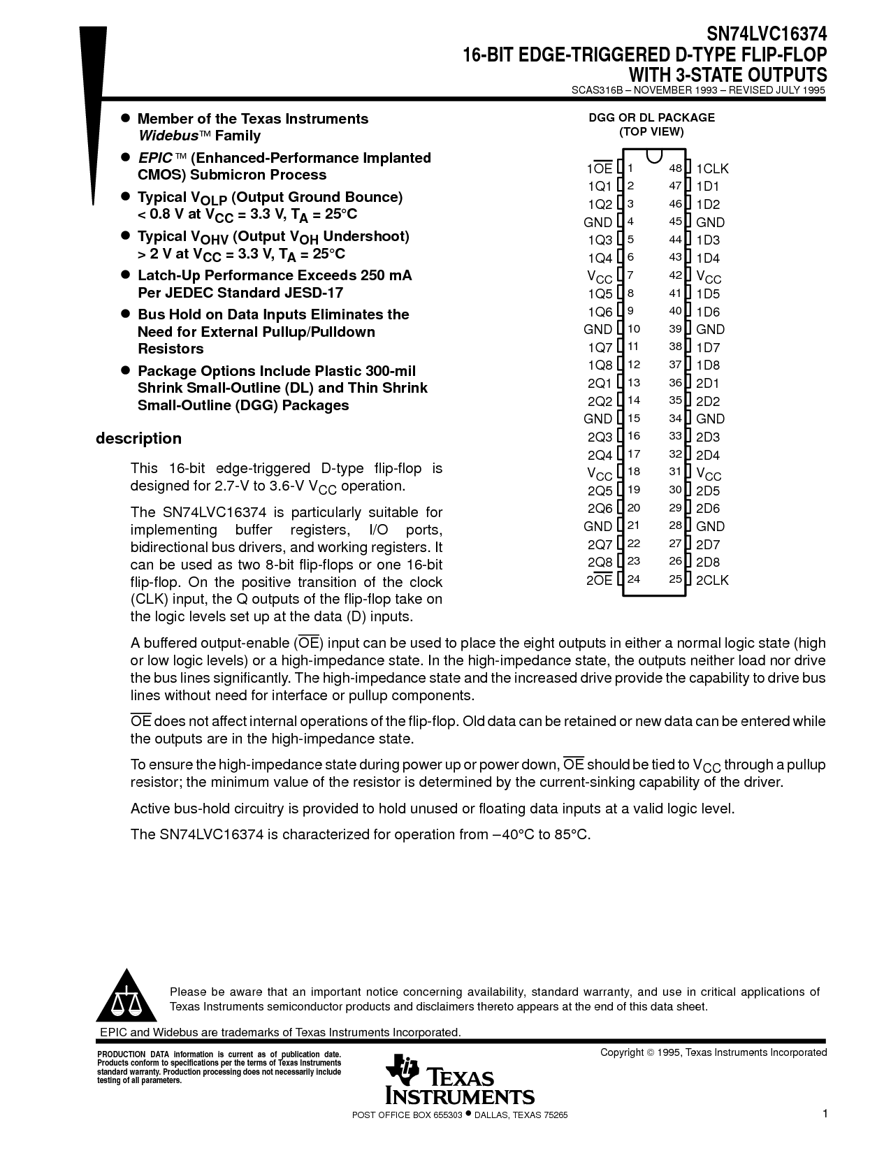 这 sn74lvc16374 是 表征 用于 操作 从 –40