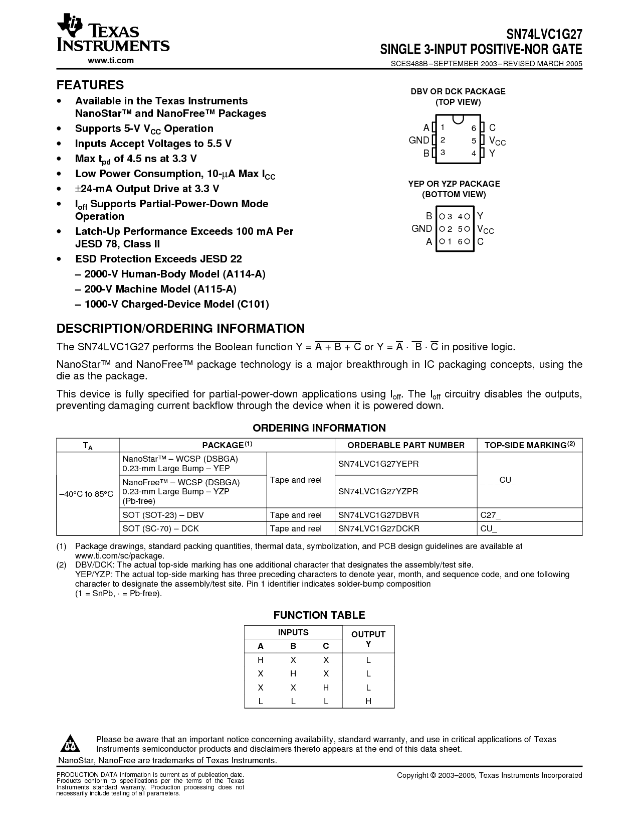 TheSN74LVC1G27performstheBooleanfunctionY=A+B+CorY=A