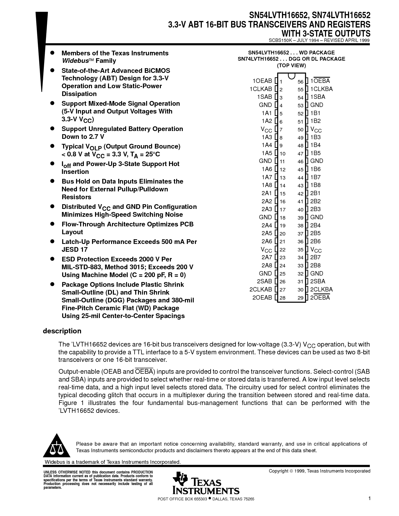 这 ’lvth16652 设备 是 16-有点 总线 收发器 设计 用于 低电压 (3.3-v) v