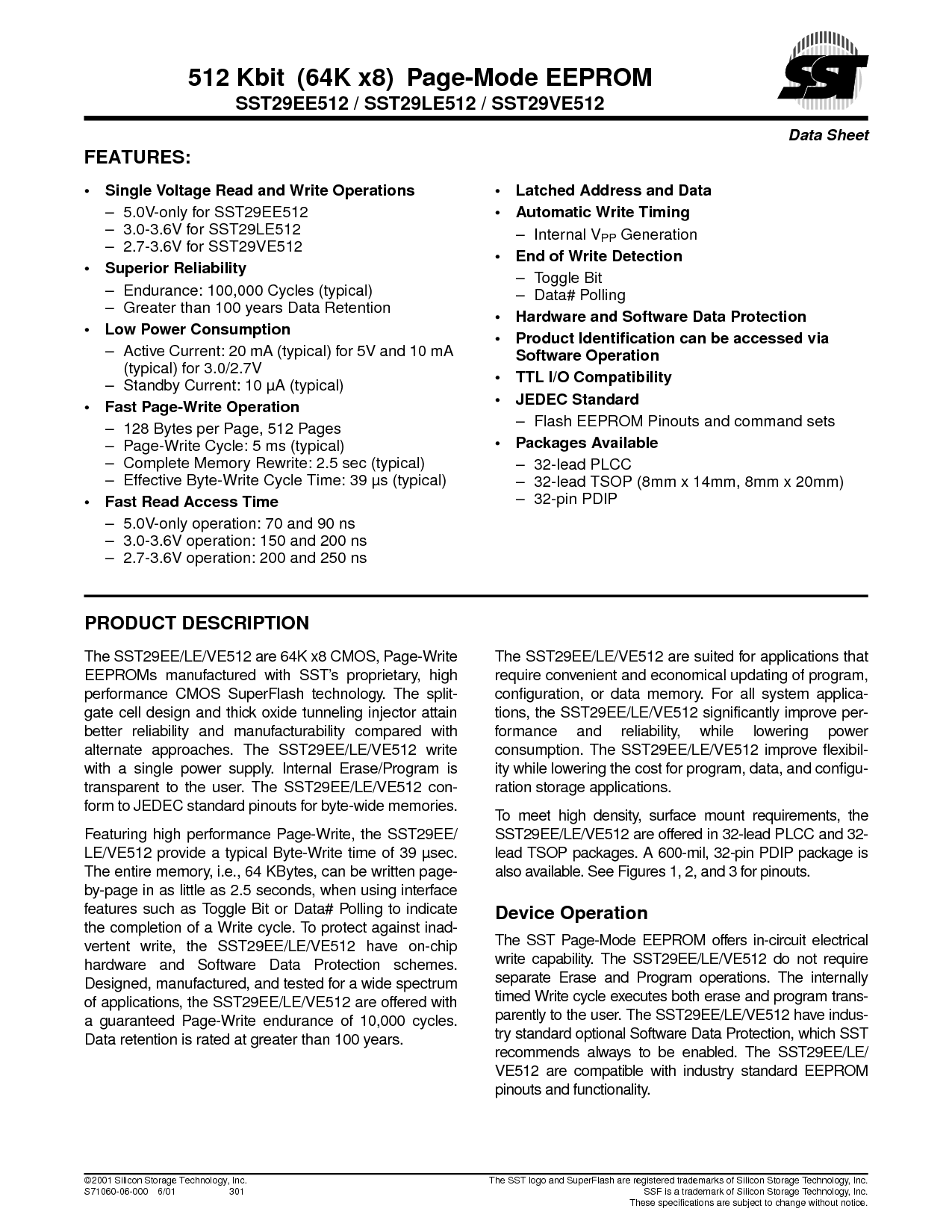 sst29ee512 / sst29le512 / sst29ve512512kb 第页-模式 闪光灯 回忆