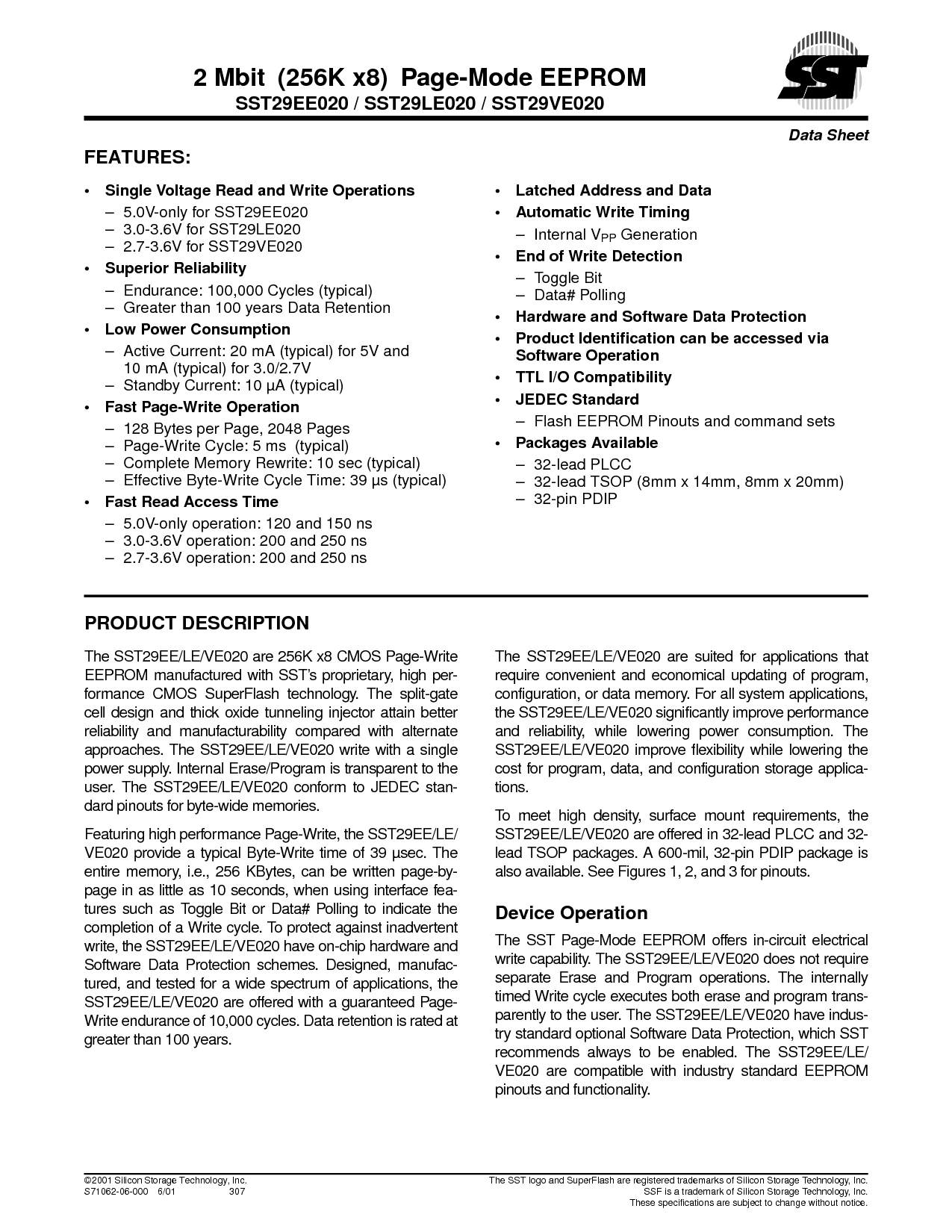 sst29ee020 / sst29le020 / sst29ve020
