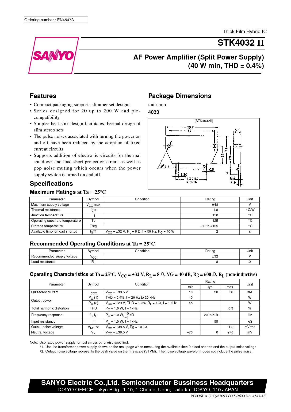 浏览型号STK4048II的Datasheet PDF文件第3页