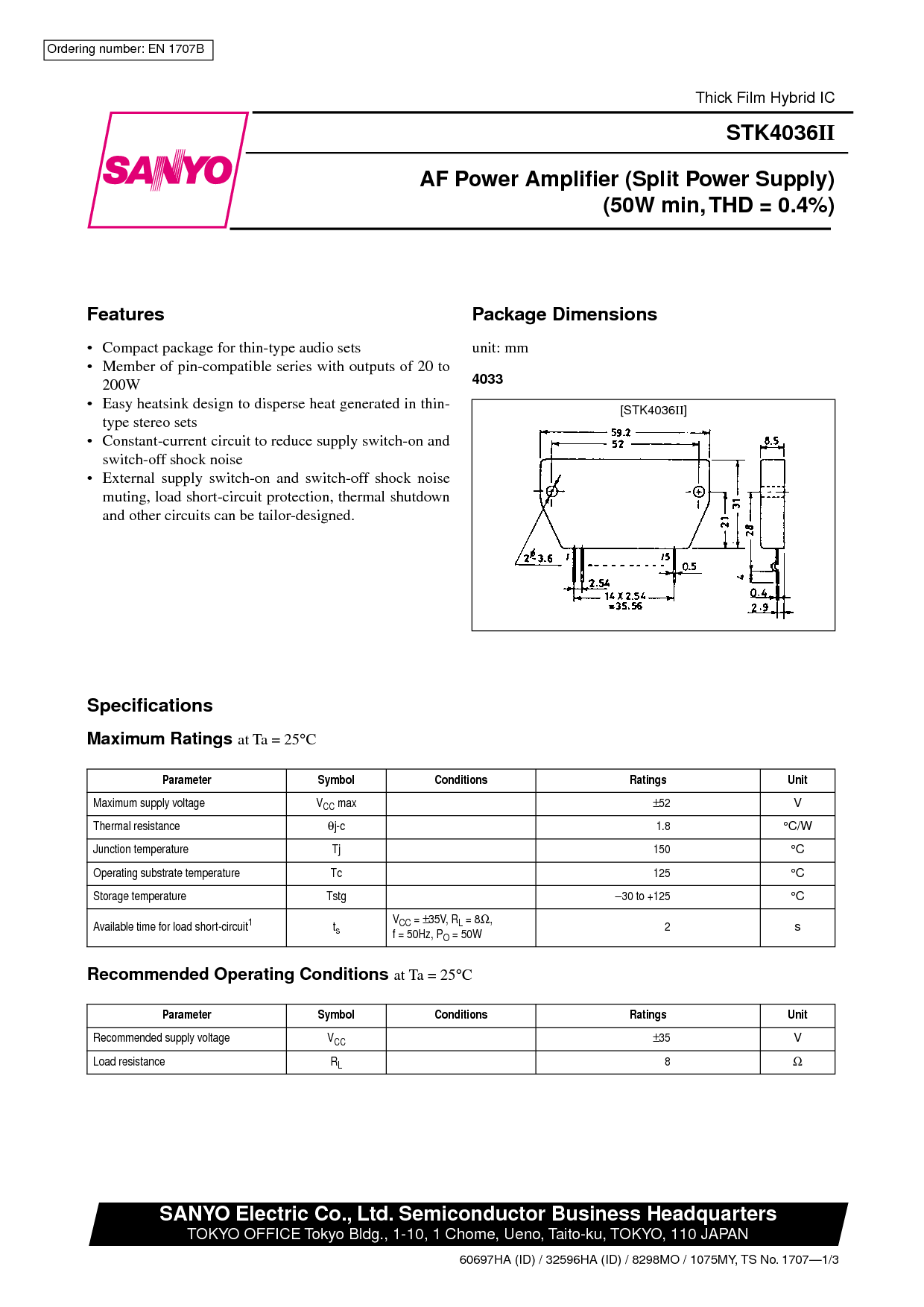 (50w 最小, thd = 0.4%)