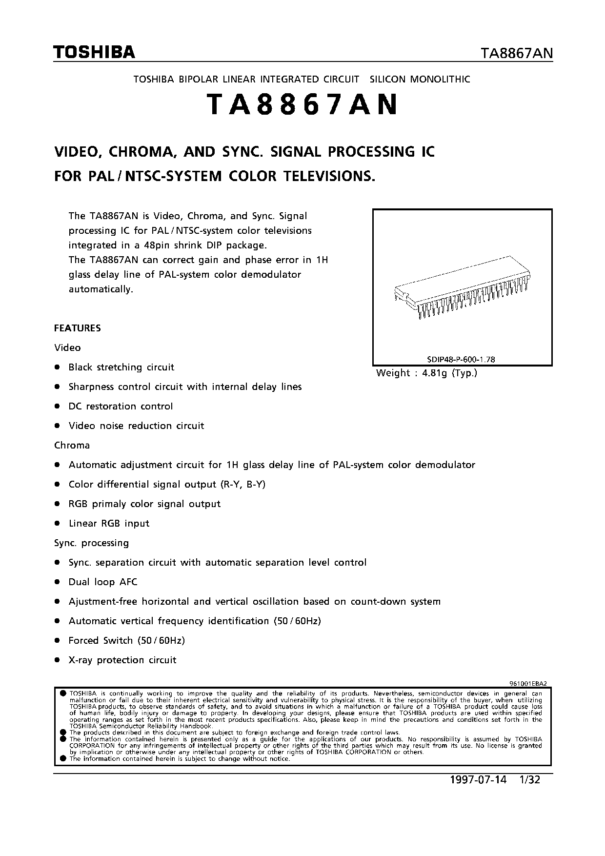 VIDEO, CHROMA, AND SYNC. SIGNAL PROCESSING IC FOR PAL/NTSC-SYSTEM COLOR TELEVISIONS