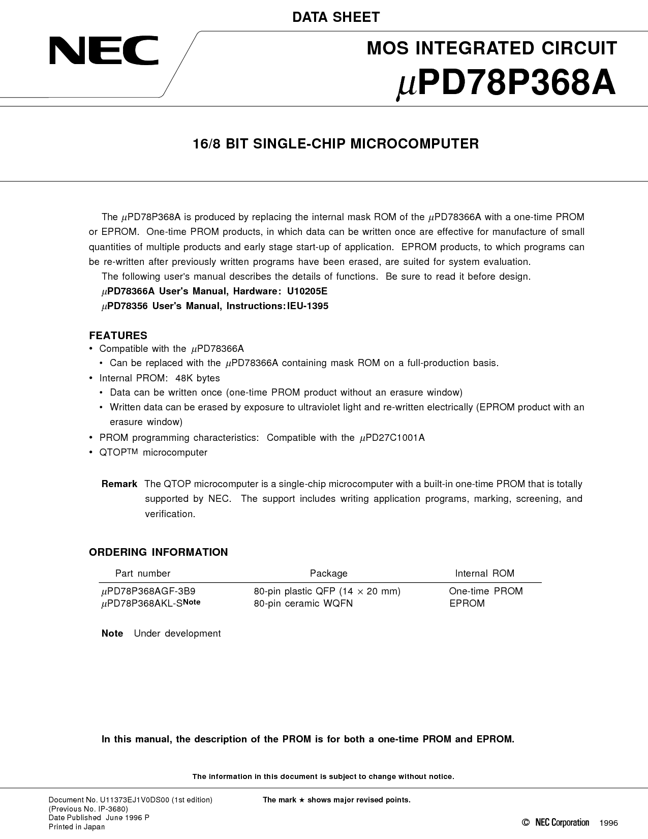 pd78p368a 是 生产 由 更换 这 内部 面具 rom 的 这