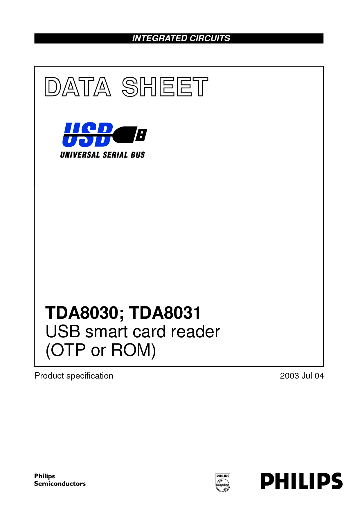 dat一个shEET 产品 Speci 2003 Jul 04 综合 电路 tda8030; tda8031 usb 智能 卡片 阅读器 (otp 或 rom) | |
