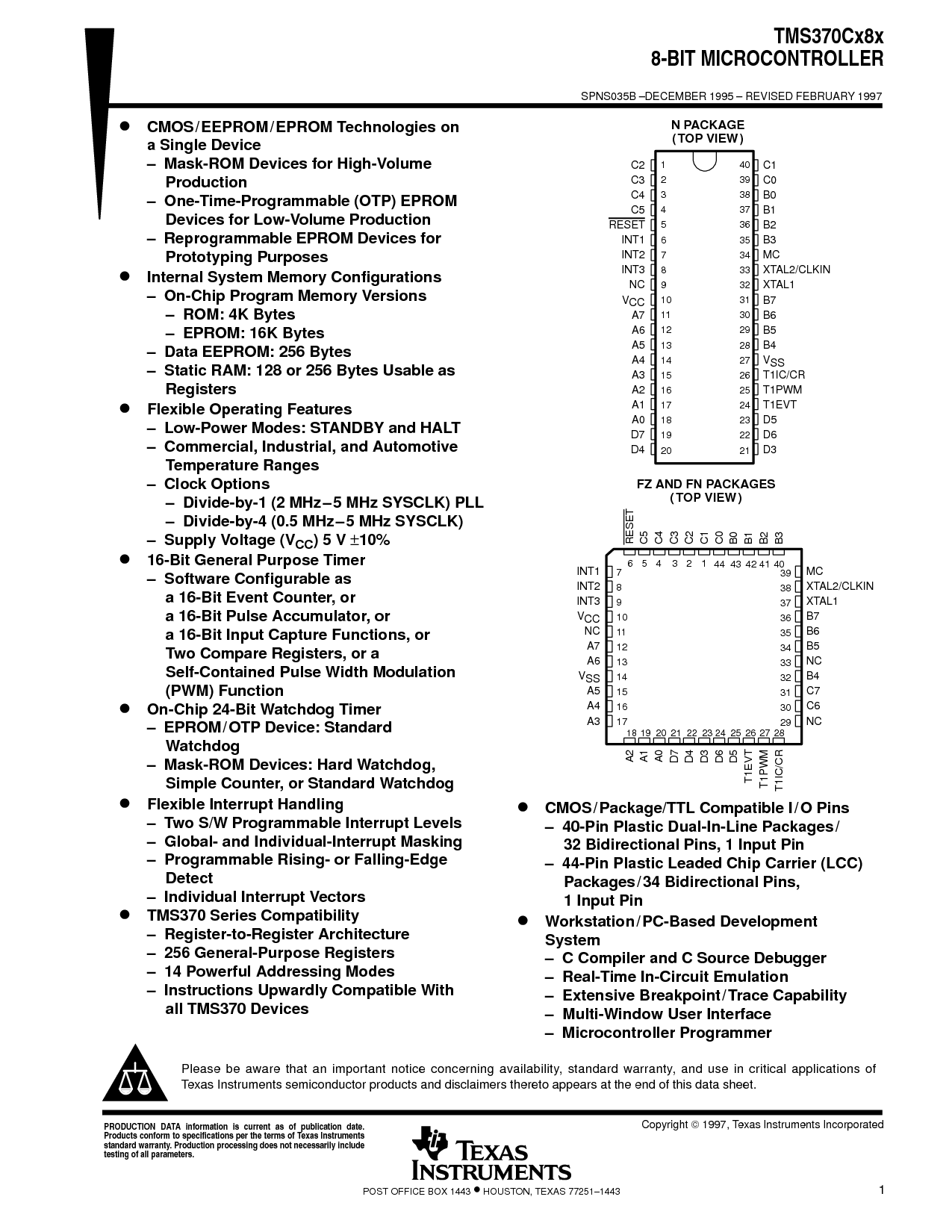 浏览型号TMS370Cx8xFN的Datasheet PDF文件第3页