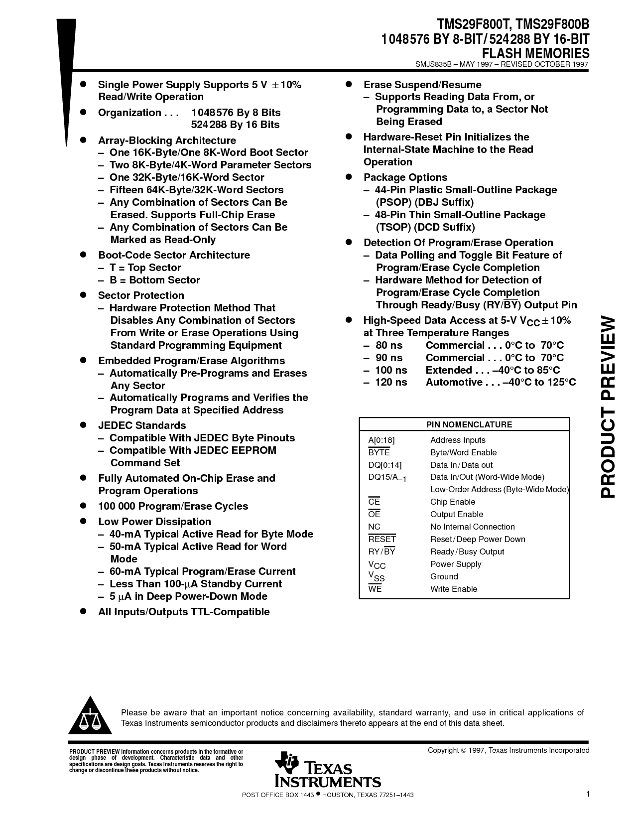1048576 BY 8-BIT/ 524288 BY 16-BIT FLASH MEMORIES