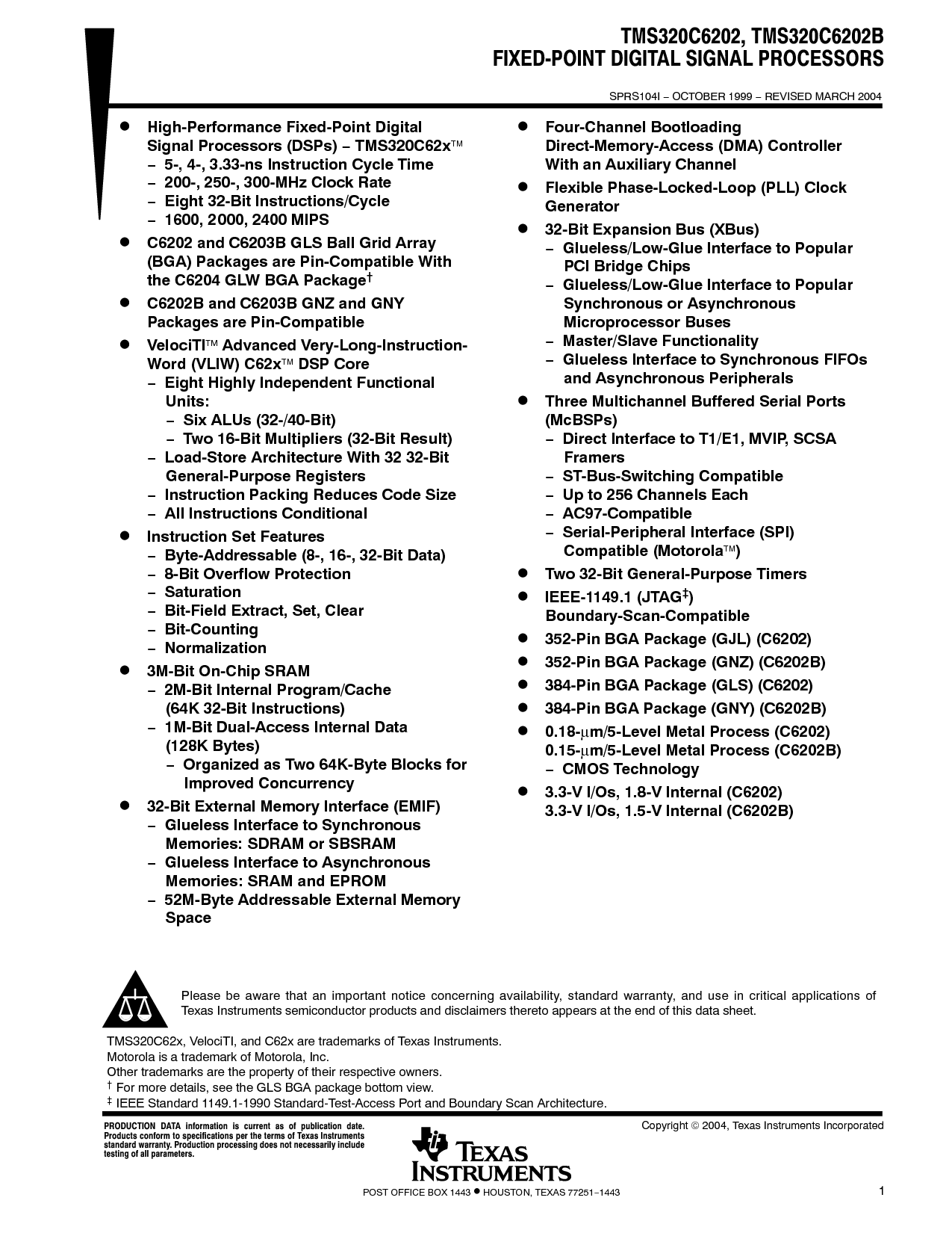 3.3-v 我/操作系统, 1.5-v 内部 (c6202b)
