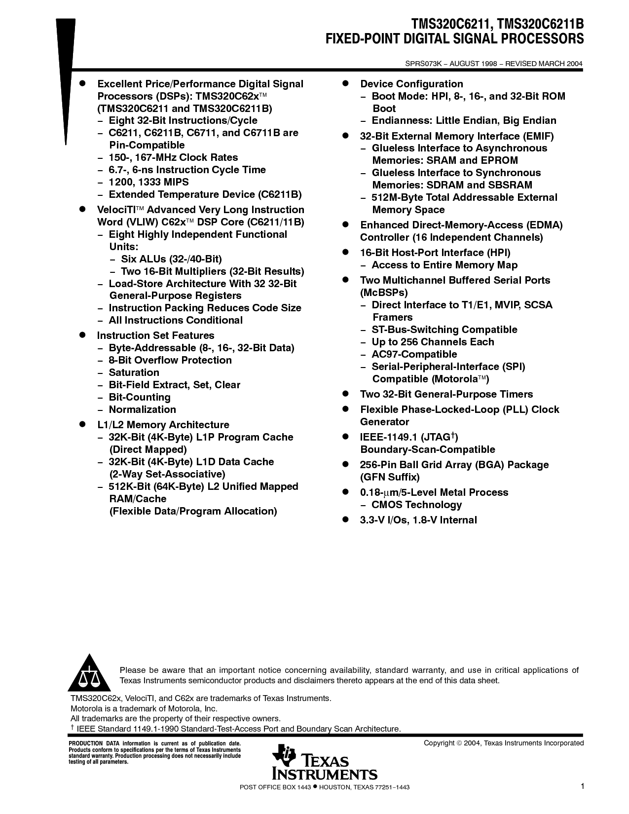 tms320c62x, velociti, 和 c62x 是 商标 的 德州 仪器仪表.