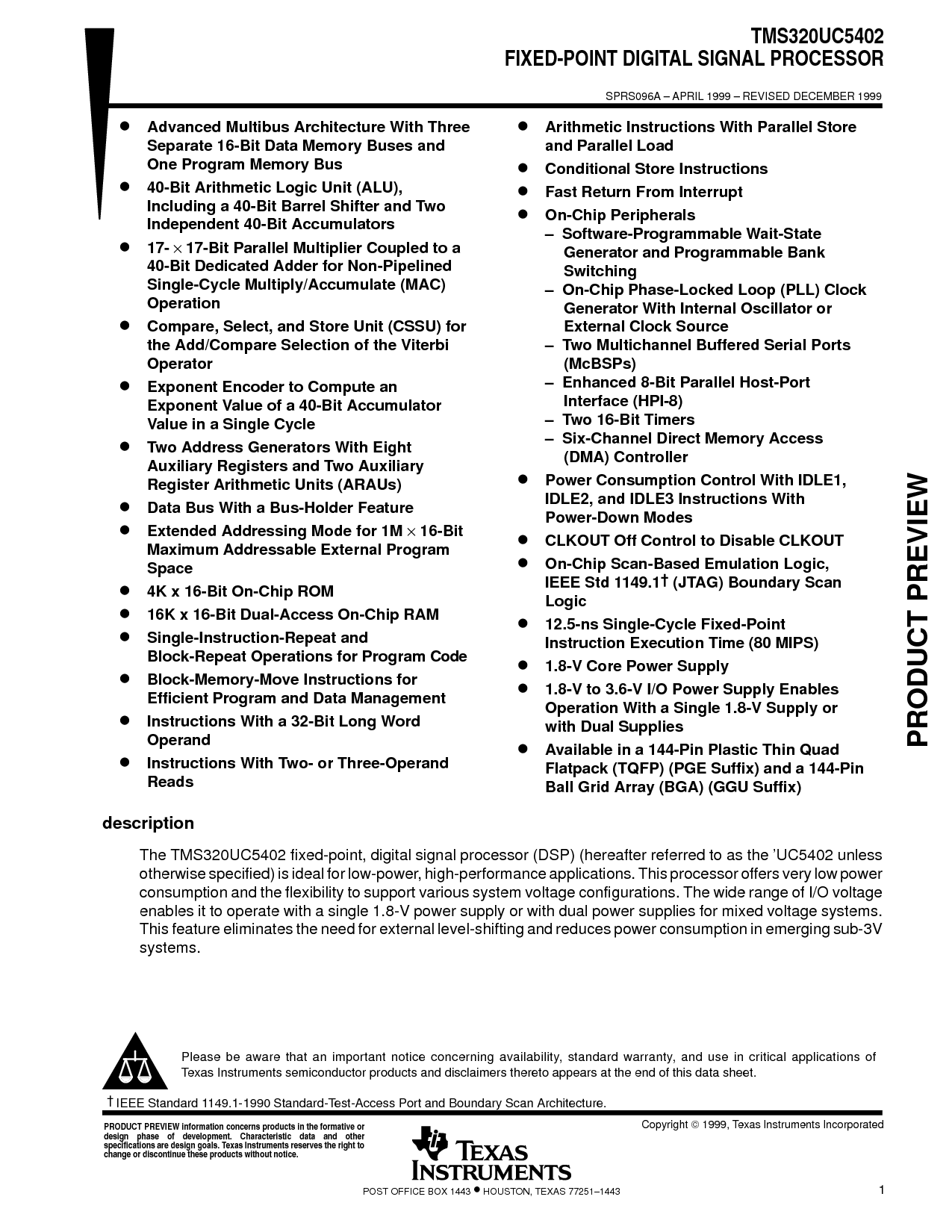 这 tms320uc5402 固定-点, 数字 信号 处理器 (dsp) (此后 参考 至 作为 这 ’uc5402 除非