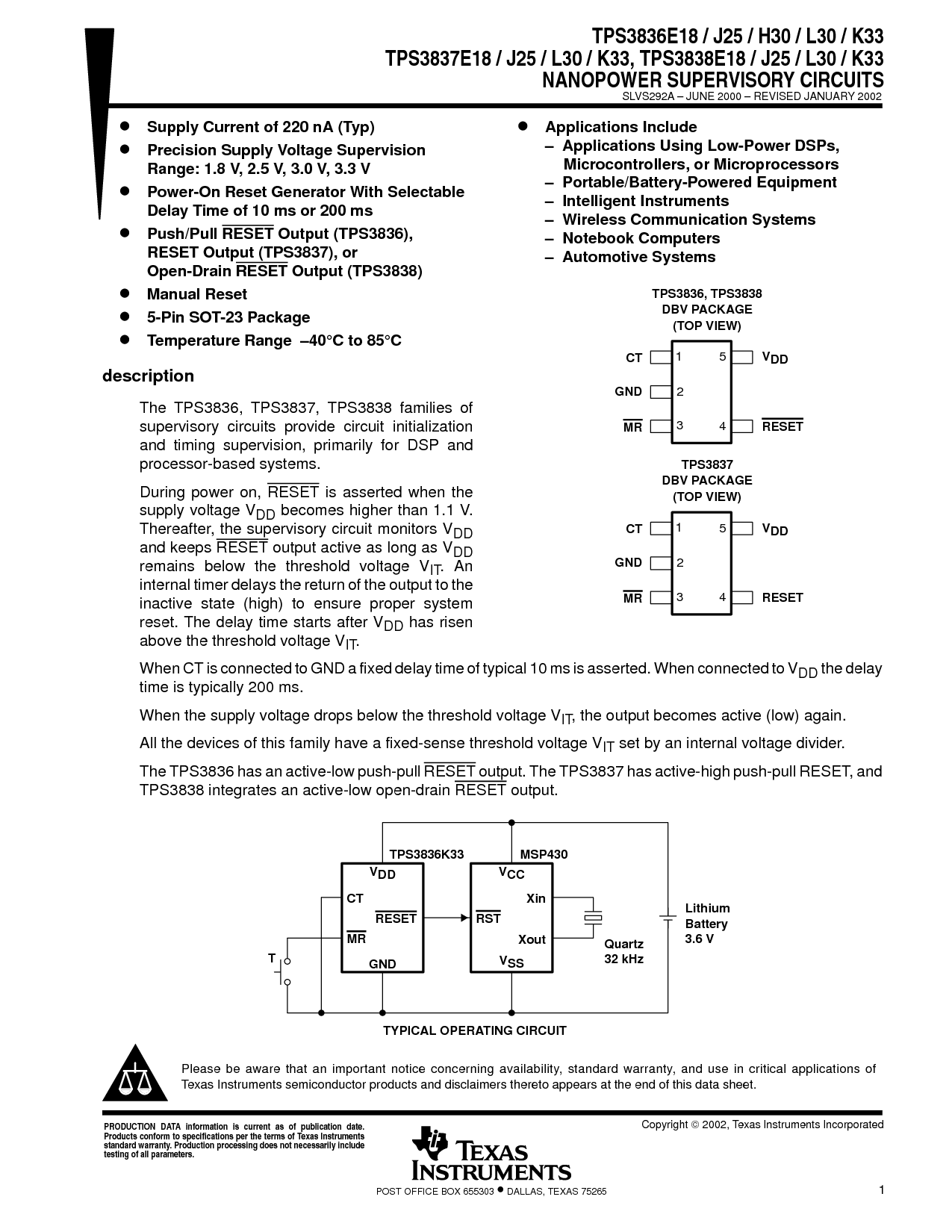 tps3837e18 / j25 / l30 / k33, tps3838e18 / j25 / l30 / k33