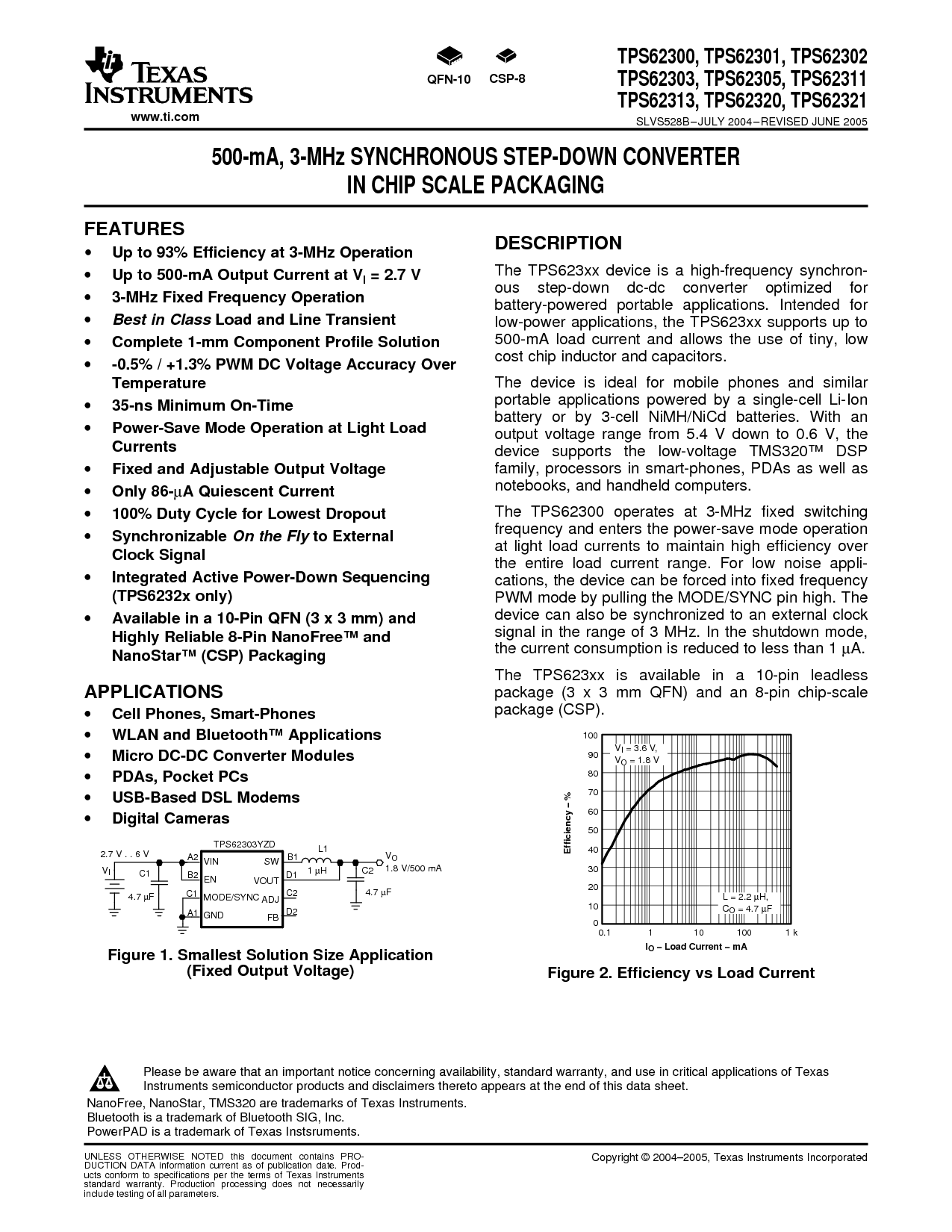 500-mA, 3-MHz SYNCHRONOUS STEP-DOWN CONVERTER IN CHIP SCALE PACKAGING