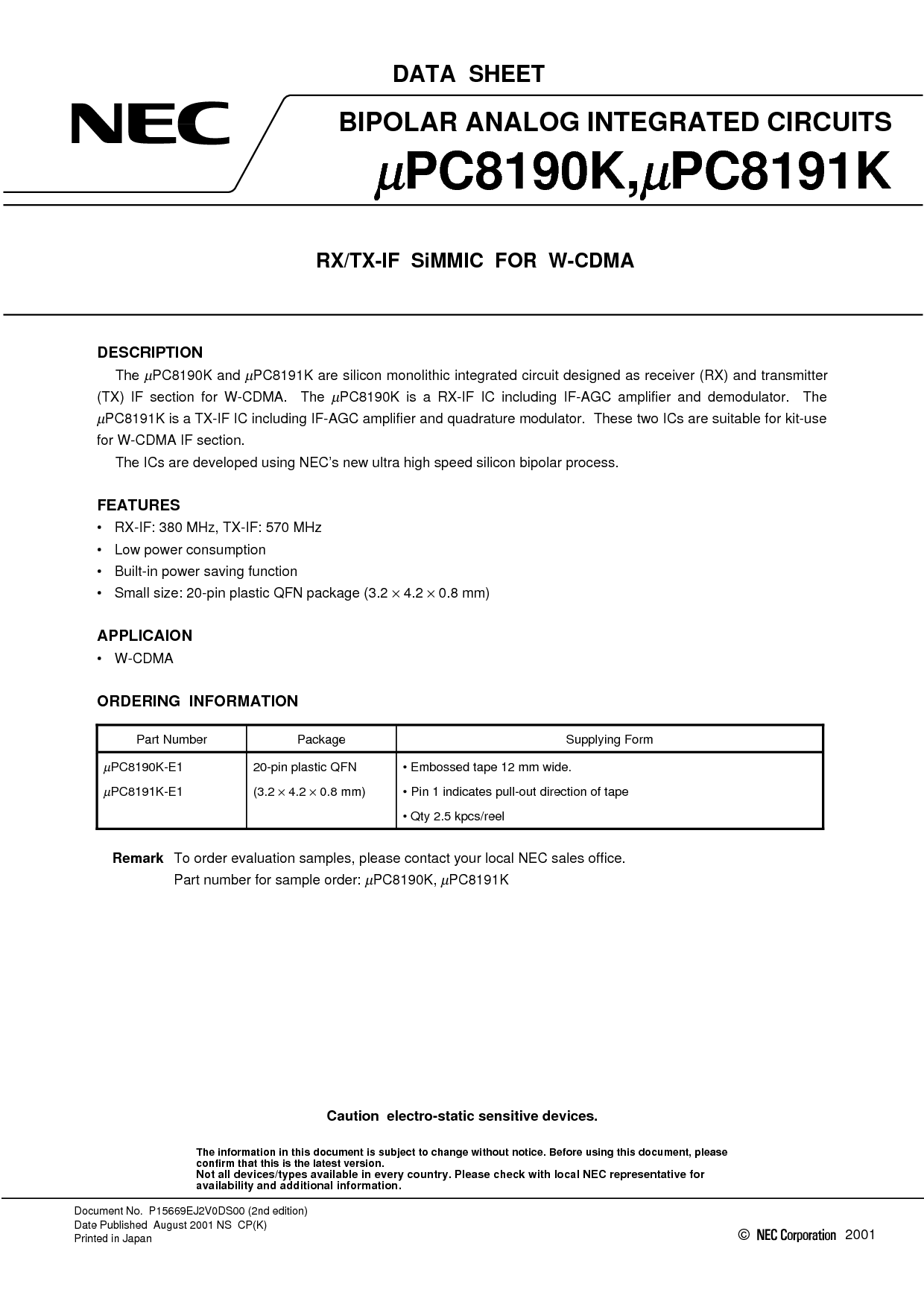 pc8191k 是 一个 tx-如果 集成电路 包括 如果-agc 放大器 和 正交 调制器. 这些 两个 ics 是 适合 用于 工具包-使用