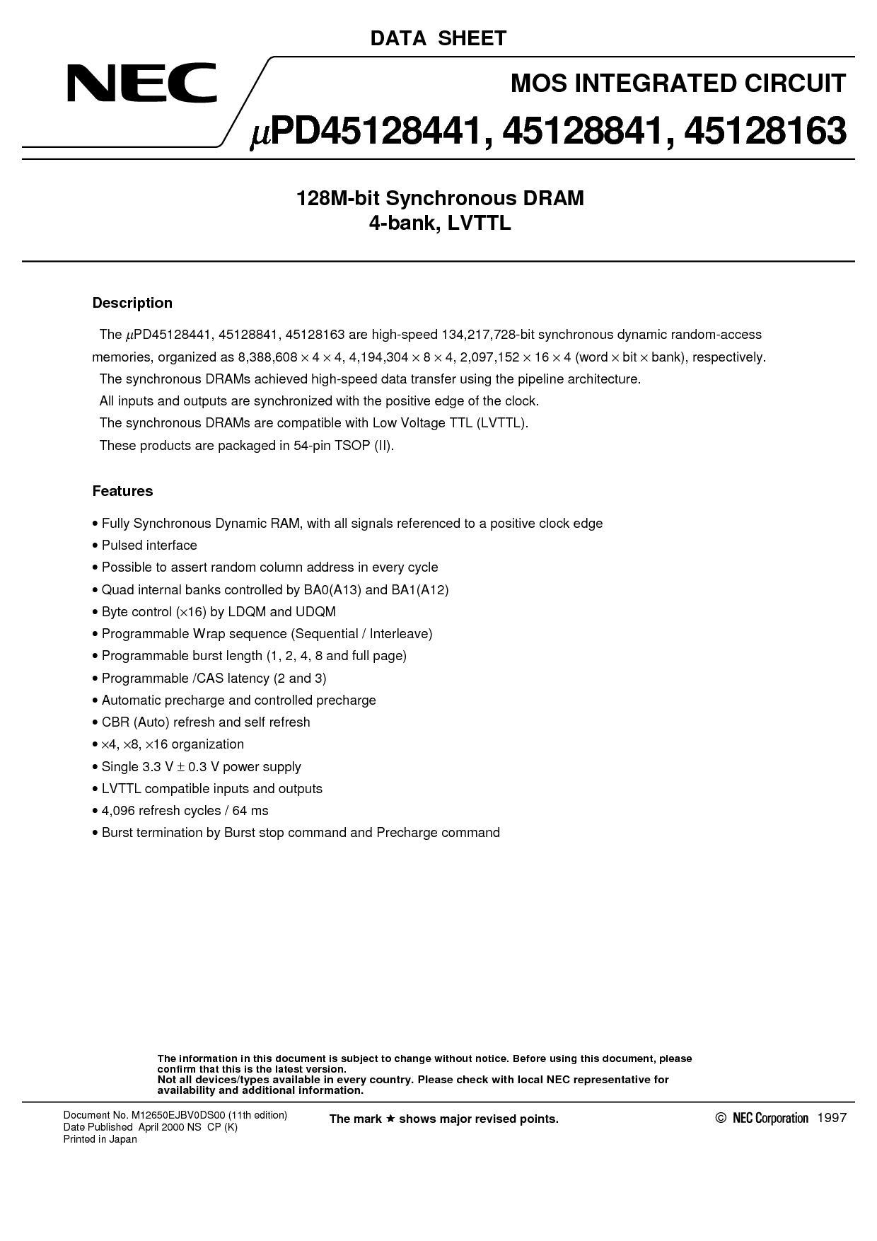 pd45128441, 45128841, 45128163 是 高速 134,217,728-有点 同步 动态 随机访问