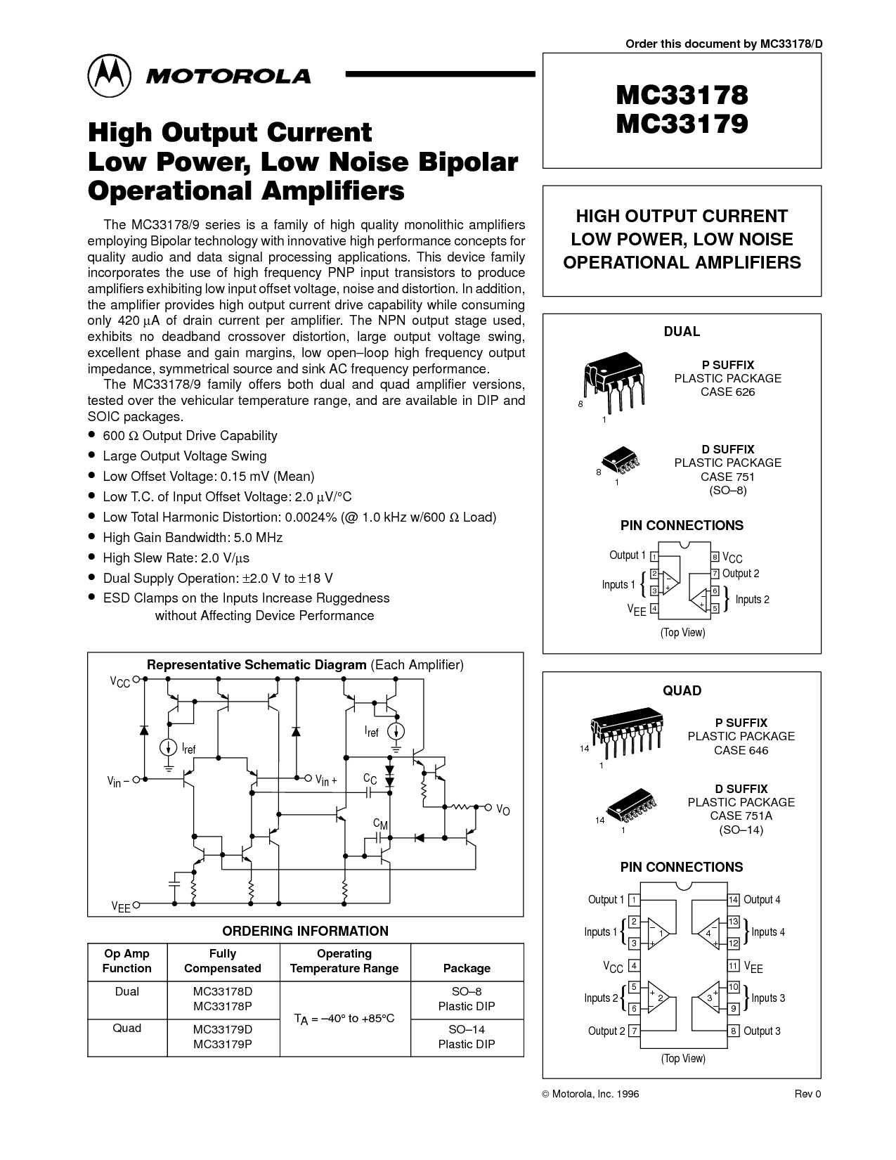 这 mc33178/9 家庭 优惠 两者都有 双 和 四边形 放大器 版本,