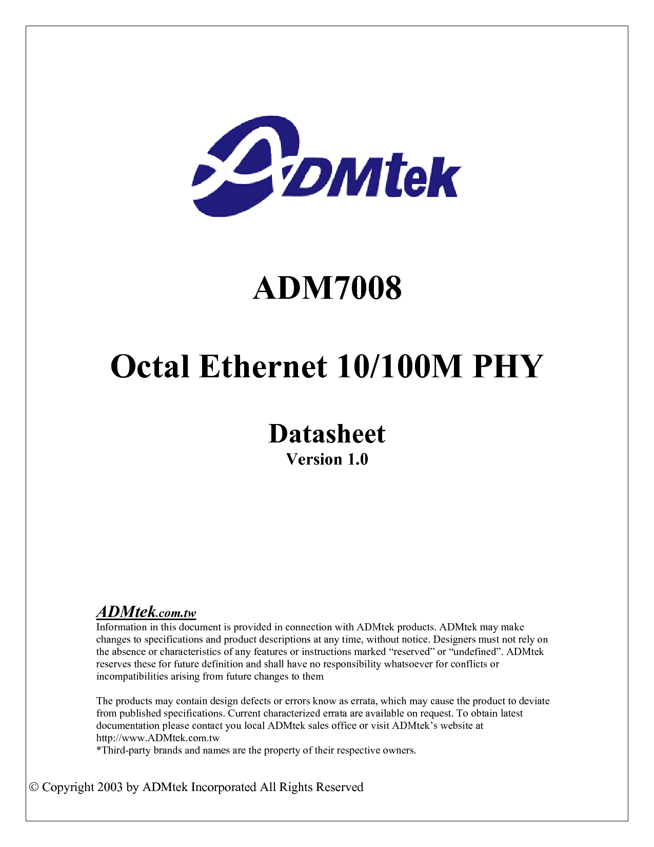 版权 2003 由 admtek incorporated 全部 权利 保留
