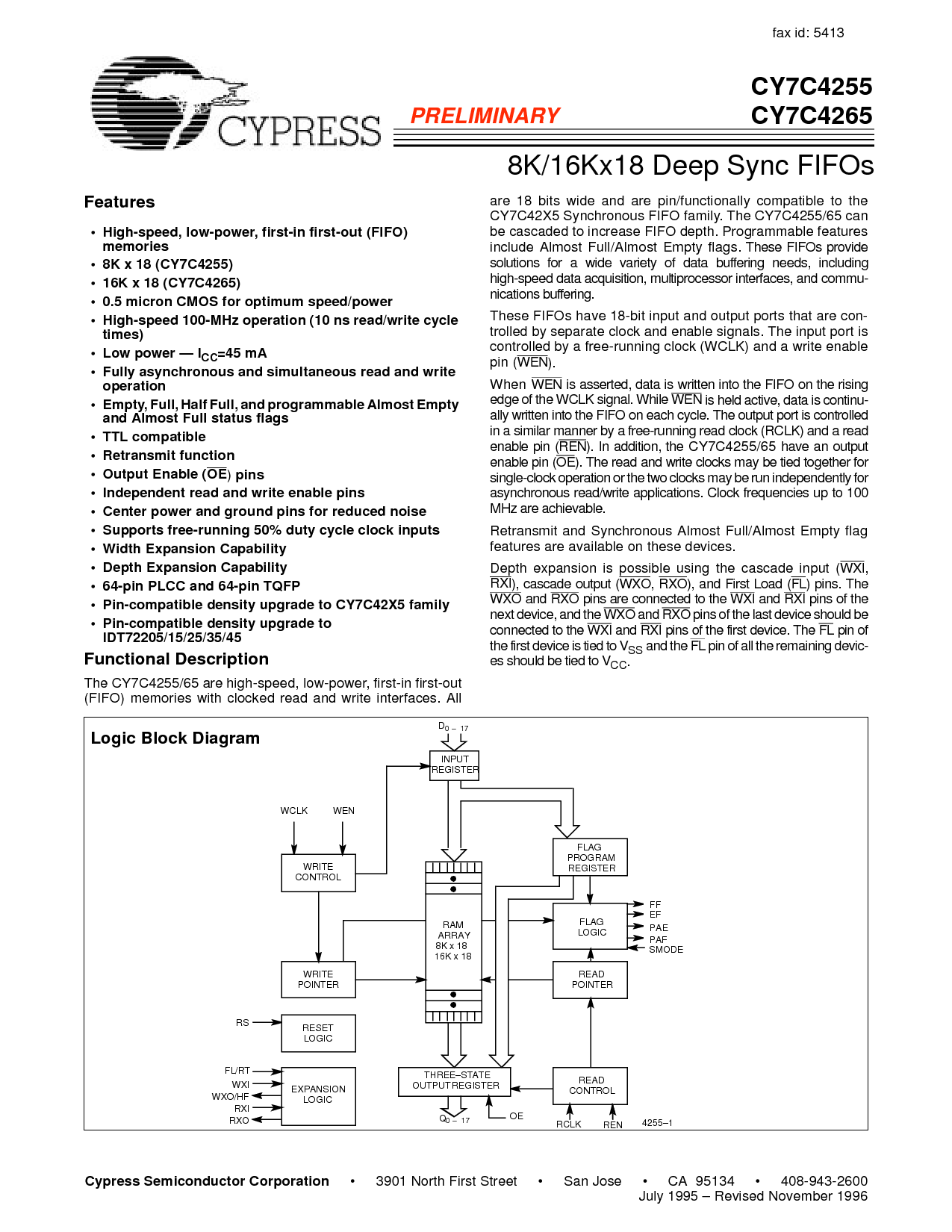 ). 入点 加法, 这 cY7c4255/65 有 一个 输出