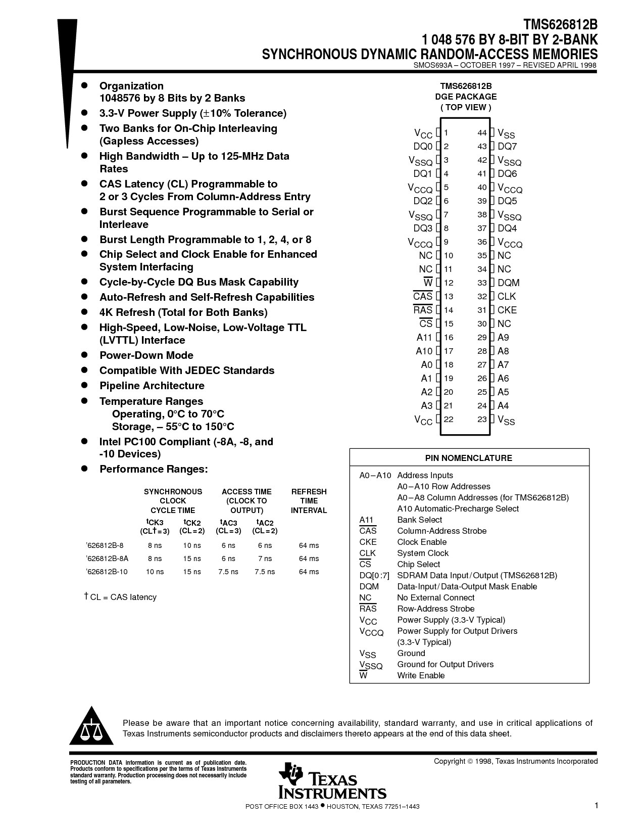 ’626812b-10 10 ns 15 ns 7.5 ns 7.5 ns 64 ms