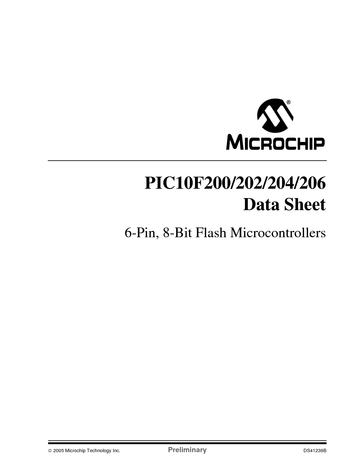 © 2005 微芯片 技术 公司 初步 DS41239B pic10f200/202/204/206 数据 工作表 6-管脚, 8-有点 闪光灯 微控制器 | |