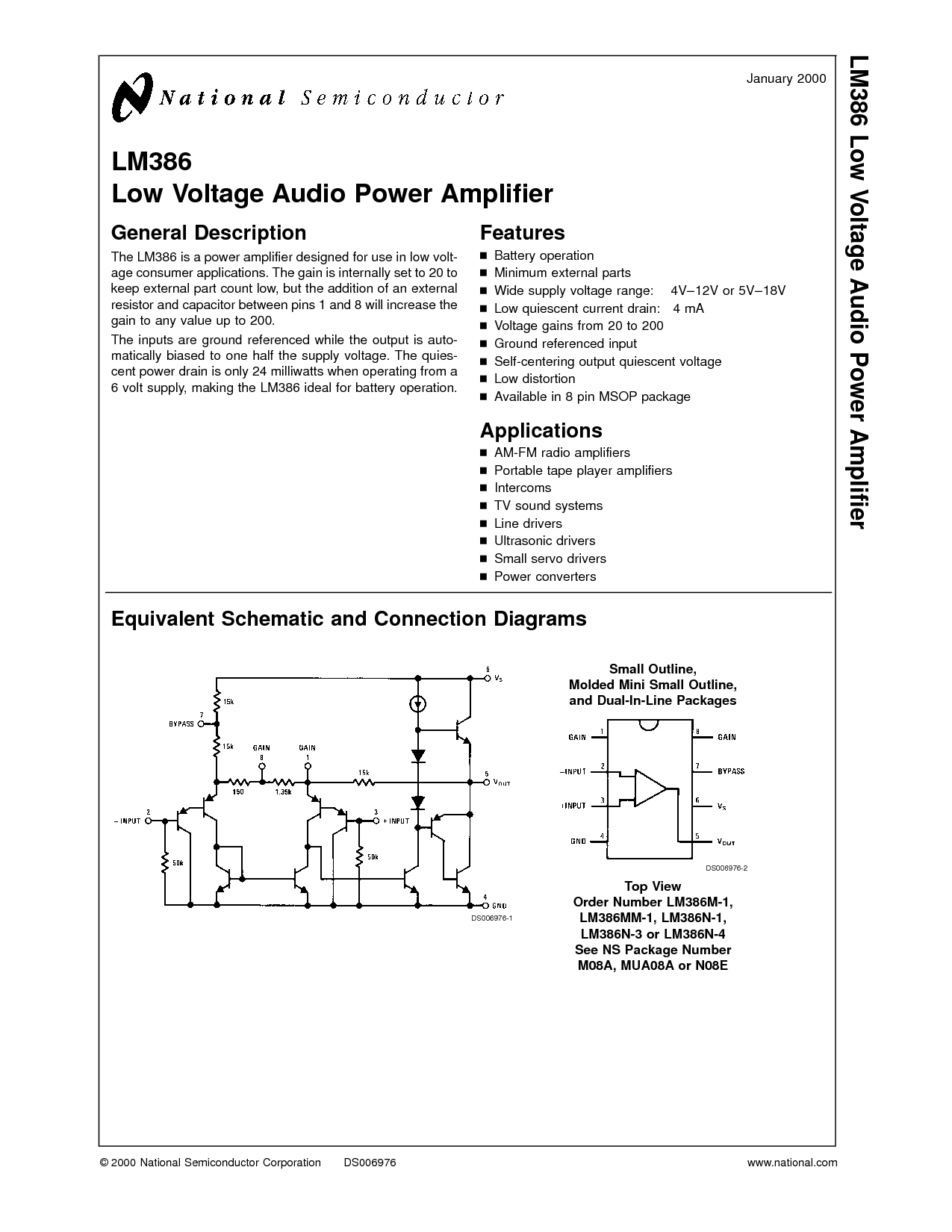 LM386 一个 电源 放大器 设计 用于 使用 入点 电压-