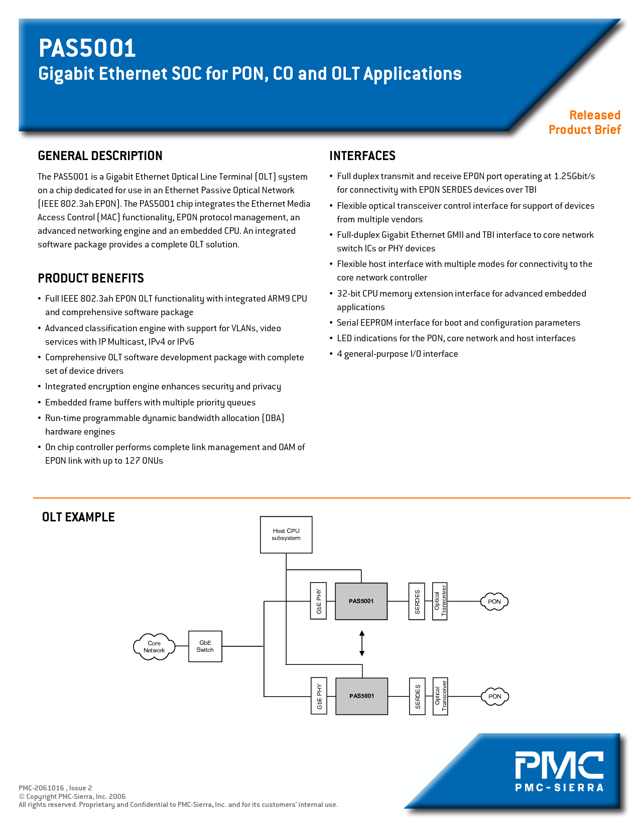 (ieee 802.3ah epon). 这 pas5001 芯片集成 这以太网 媒体