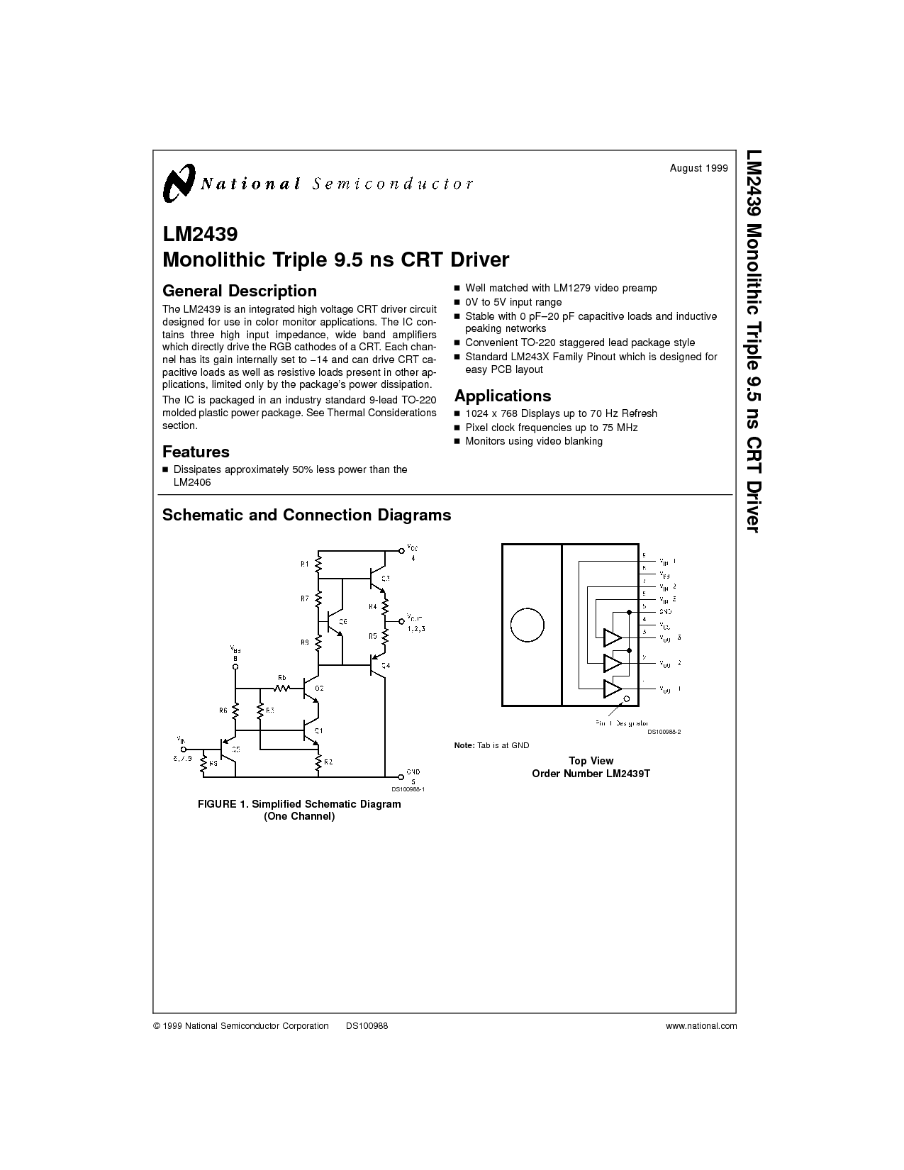 LM2439 单片 三倍 9.5 ns CRT 驾驶员