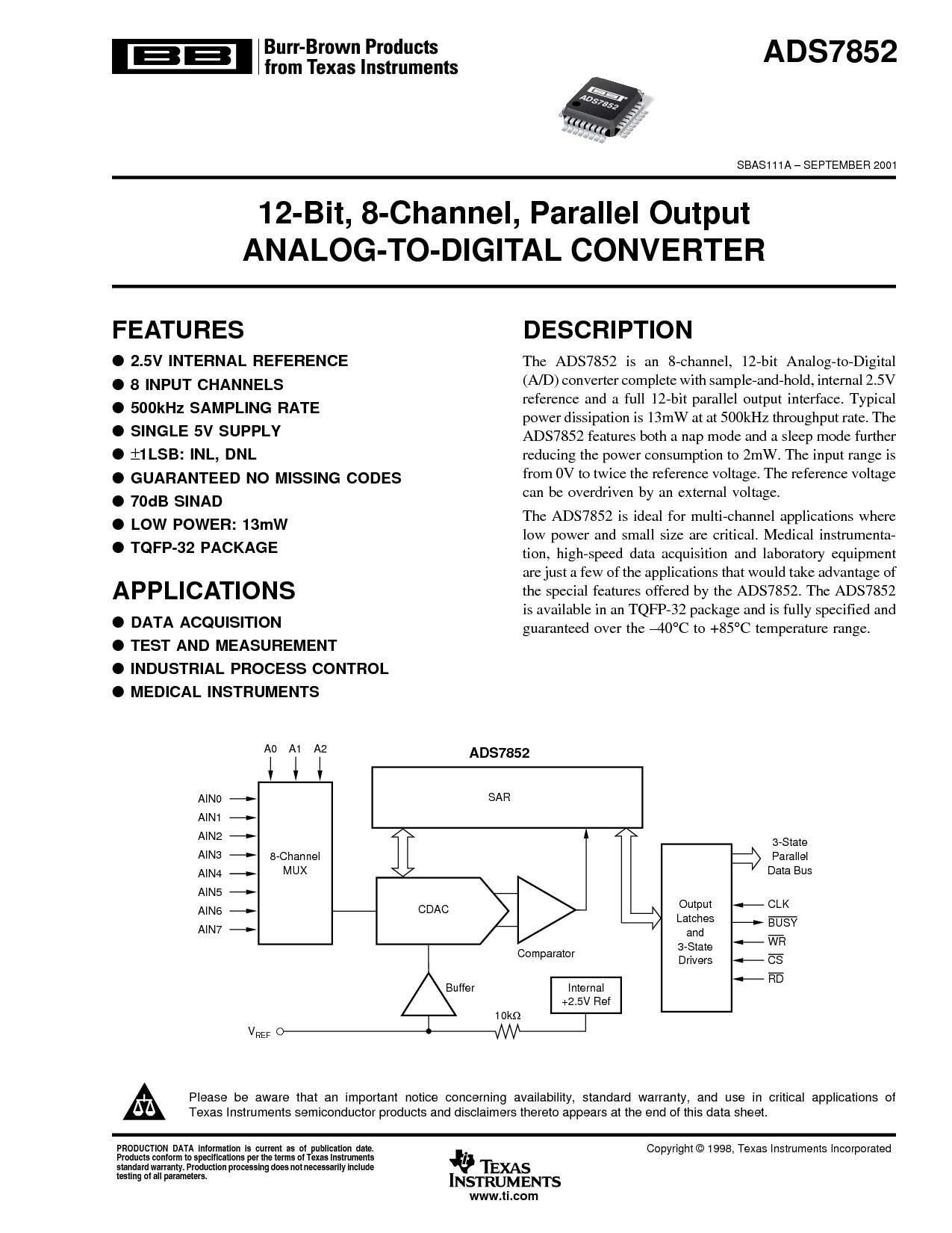 这 ads7852 是 一个 8-频道, 12-有点 模数转换