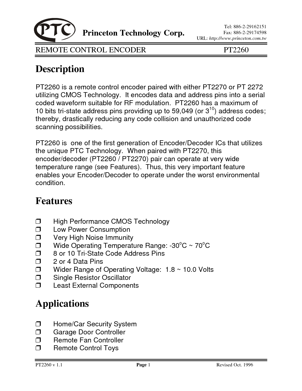 pt2260 是 一个 的 这 第一 世代 的 编码器/解码器 ics 那 利用