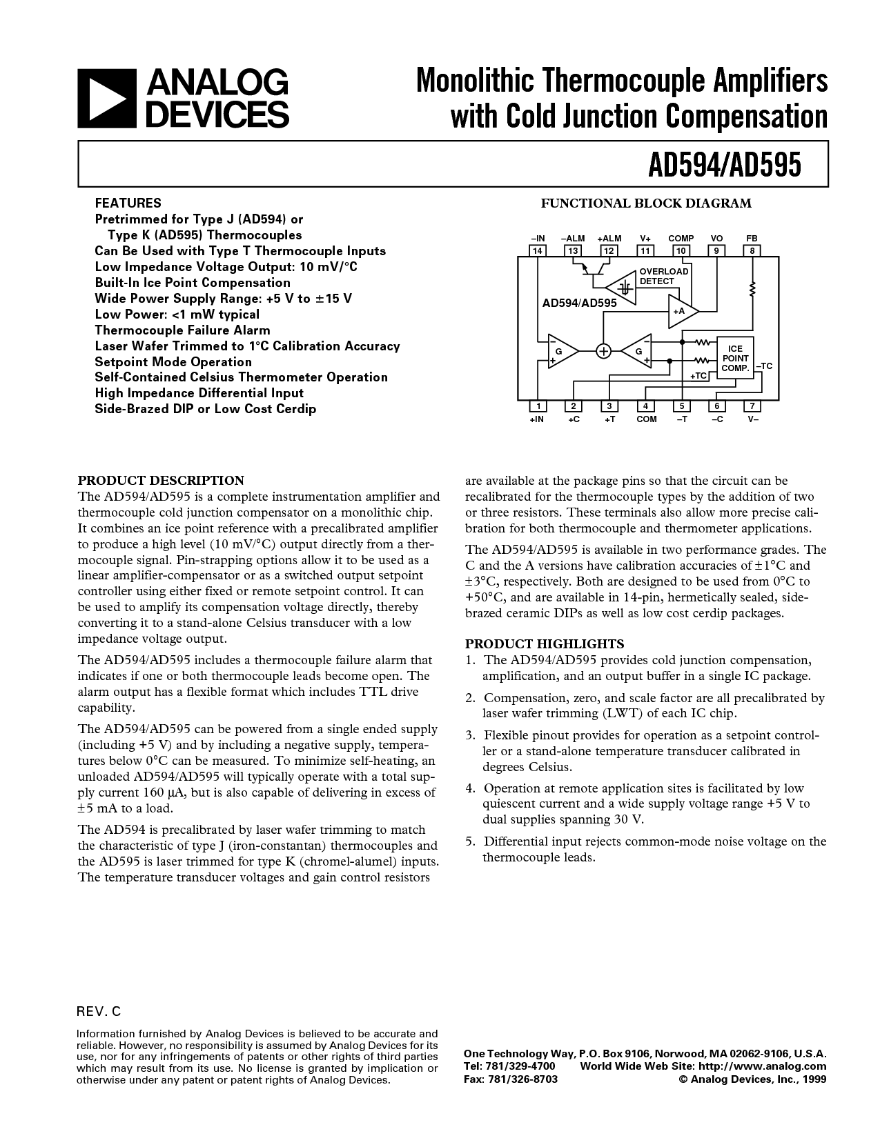 1. 这 ad594/ad595 提供 冷 接合点 补偿,