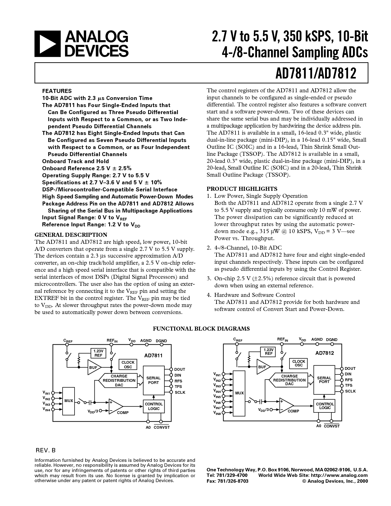 两者都有 这 ad7811 和 ad7812 操作 从 一个 单独 2.7 v