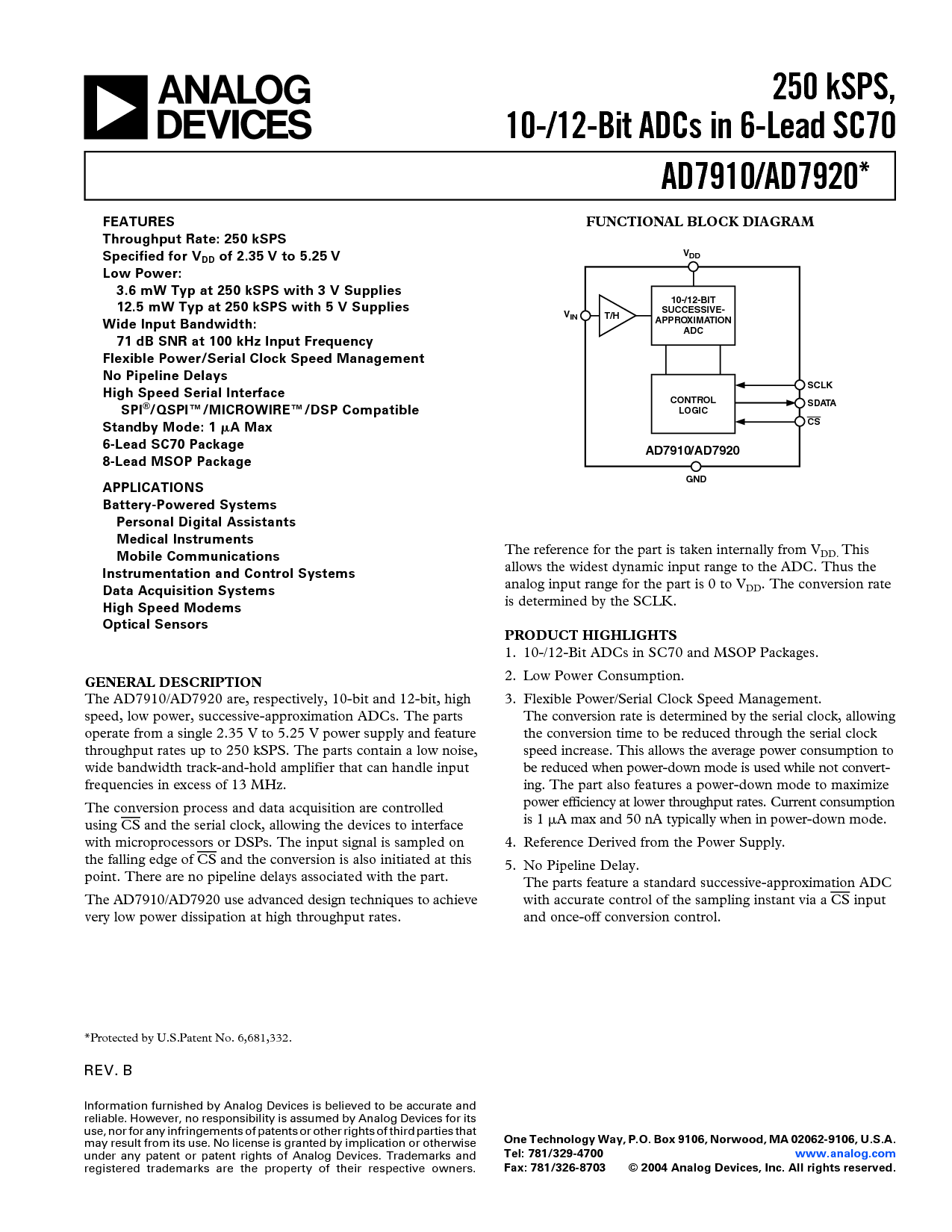 传真: 781/326-8703 © 2004 模拟 设备, 公司 全部 权利 保留.
