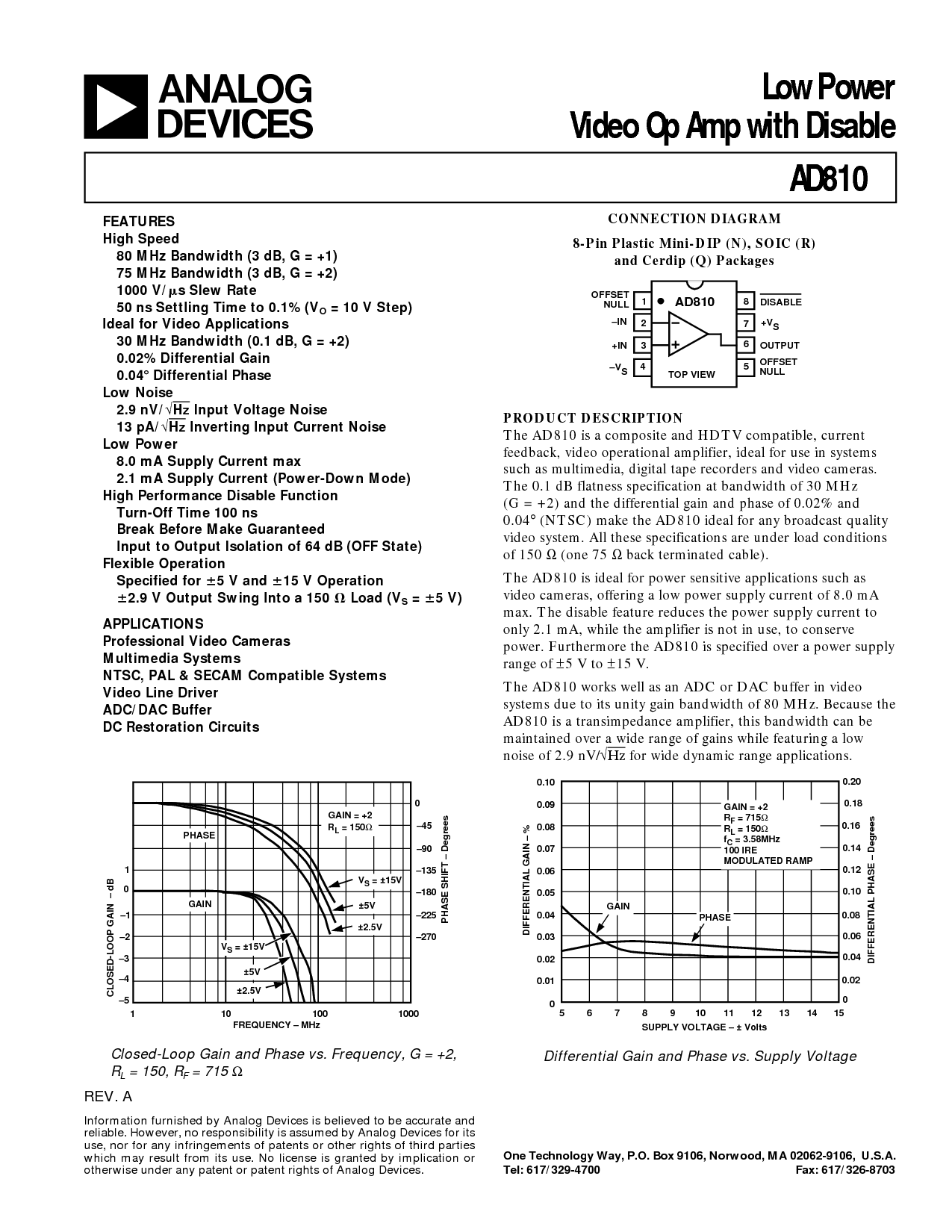 电源. 此外 这 ad810 是 指定 结束 一个 电源 供应