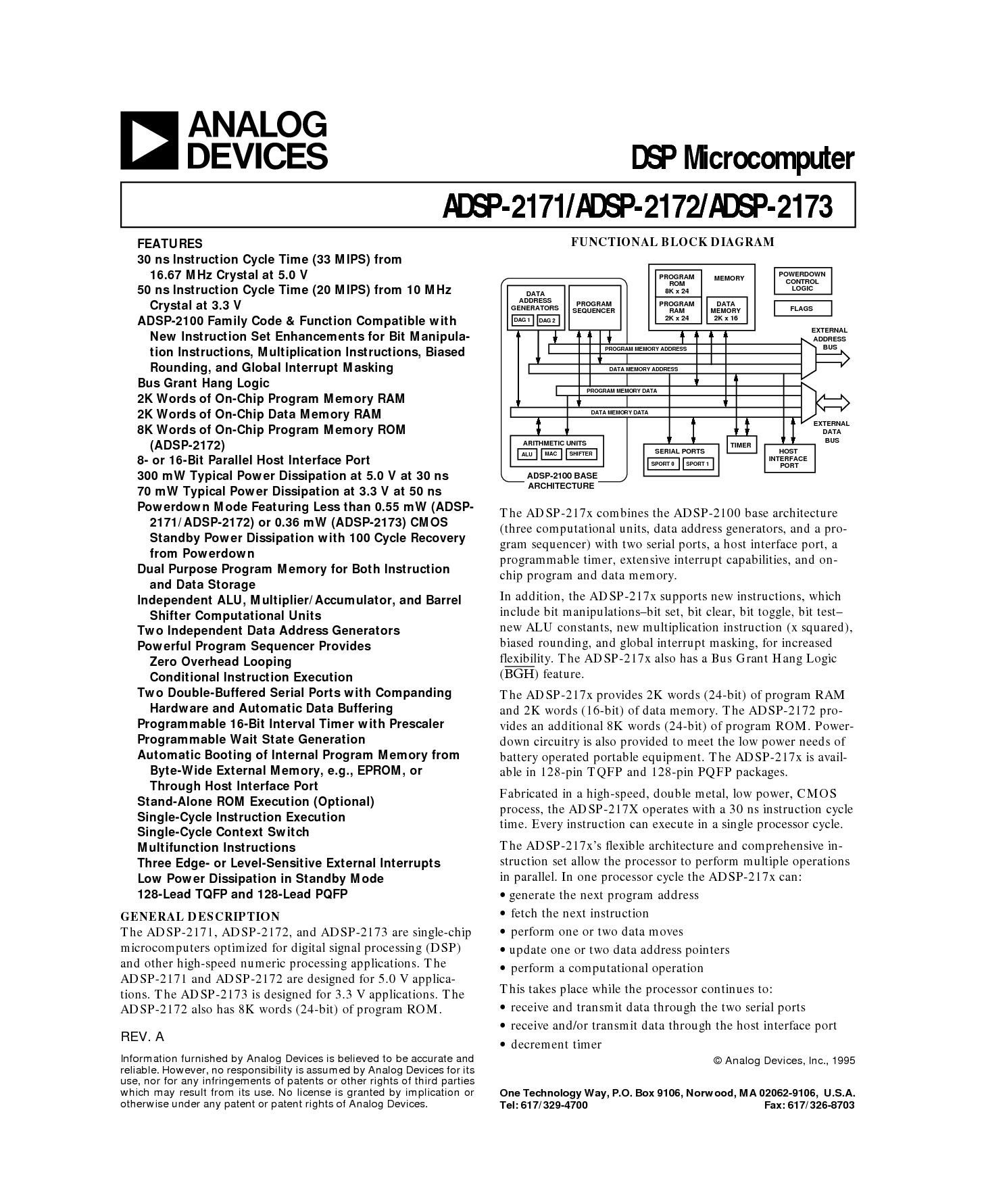 浏览型号ADSP-2171的Datasheet PDF文件第2页
