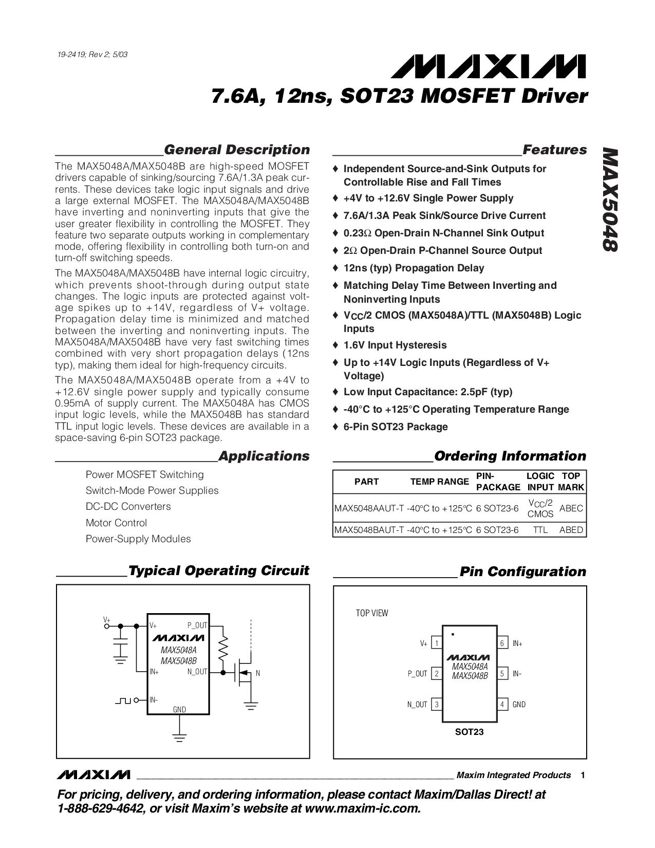 浏览型号MAX5048AAUT-T的Datasheet PDF文件第2页