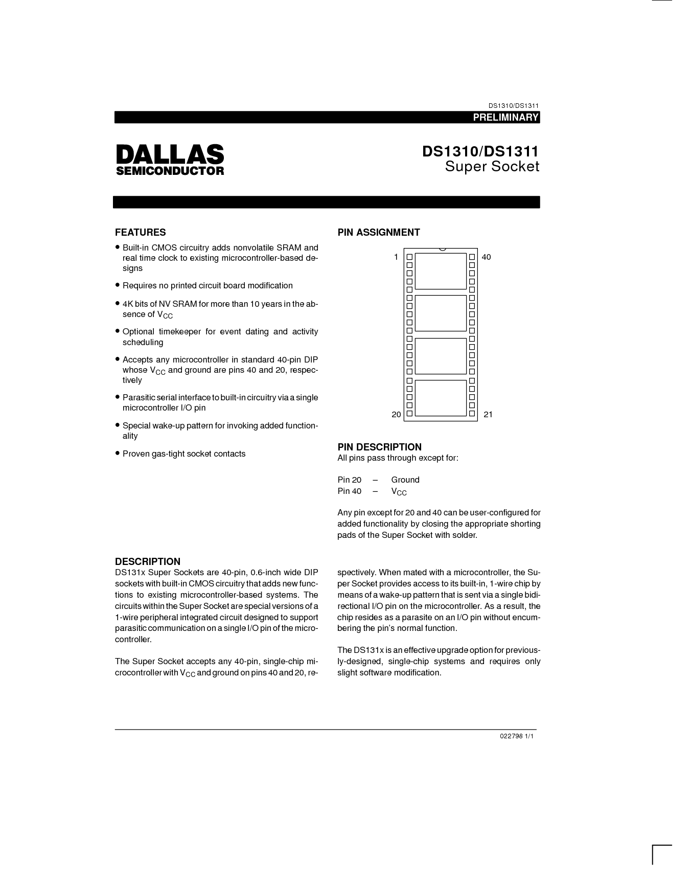 ds131x 超级 插座 是 40-管脚, 0.6-英寸 宽 倾角