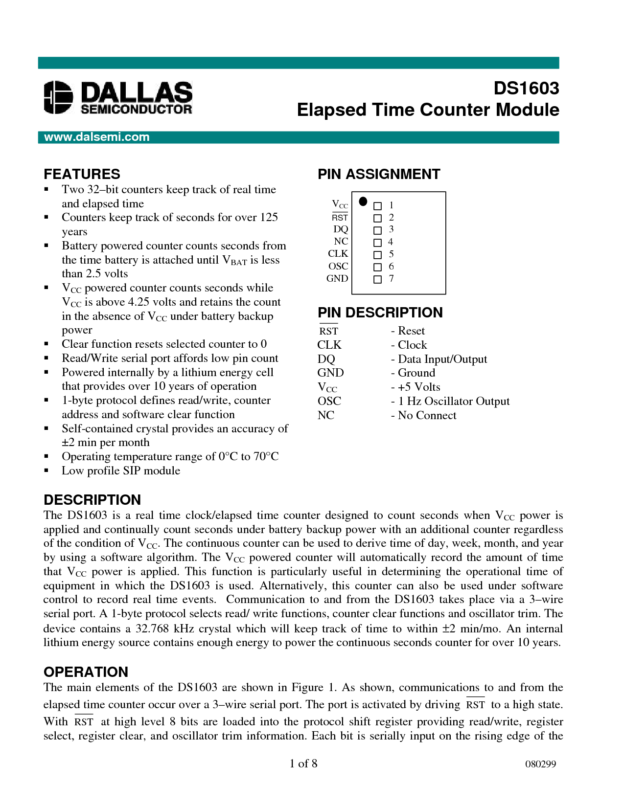 设备 入点 哪个 这 ds1603 是 已使用. 或者, 这个 计数器 可以 也 是 已使用 下 软件