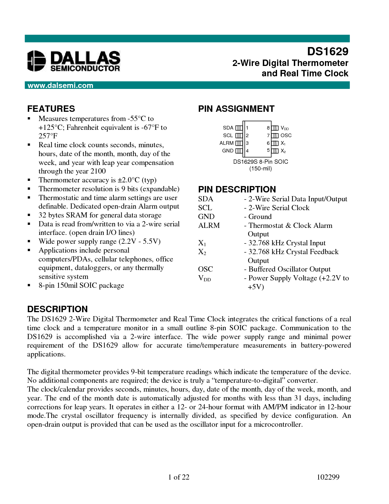 ds1629 是 已完成 通过 一个 2-电线 接口. 这 宽 电源 供应 范围 和 最小 电源